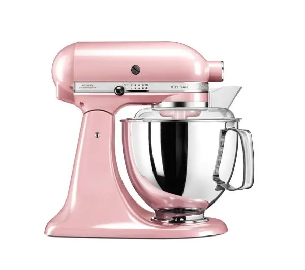 <h4>KitchenAid ARTISAN 5KSM175PS(delikatny róż)</h4><p>Ikona designu, mikser planetarny produkowany w USA od 1937 roku, dostępny w ponad 20 kolorach, wykonany z metalu, z silnikiem o dużym momencie obrotowym z bezpośrednim napędem i przekładnią planetarną, czterema narzędziami, osłoną oraz dwiema dzieżami ze stali nierdzewnej.</p><h4>Poznaj KitchenAid ARTISAN 5KSM175PS</h4><a></a><h5>ZACHWYCAJĄCY DESIGN</h5><p>Ponadczasowy design, który nie zmienił się od 1937 roku i mnogość kolorów sprawiają, że mikser KitchenAid Artisan to prawdziwa perełka na blacie kuchennym. Wysoka bezawaryjność urządzenia to zasługa solidnej konstrukcji, wykonanej w całości z metalu. Jest łatwy w czyszczeniu. Połączenie optymalnej wagi z antypoślizgowymi gumowymi nóżkami sprawia, że sprzęt podczas pracy nie przesuwa się na kuchennym blacie.</p><a></a><h5>CICHY NAPĘD</h5><p>Poszukujesz uniwersalnego urządzenia do wielu czynności kuchennych? KitchenAid ARTISAN 5KSM175PS z ekonomicznym silnikiem 300 W oferuje odpowiedni zapas momentu obrotowego do wyrabiania ciast. Dzięki bezpośredniemu napędowi sprzęt zapewnia stabilną, cichą pracę oraz perfekcyjne mieszanie i napowietrzanie mas z wykorzystaniem 67-punktowego systemu planetarnego.</p><a></a><h5>FUNKCJONALNE AKCESORIA</h5><p>KitchenAid ARTISAN 5KSM175PS to propozycja dla entuzjastów domowych wypieków i makaronów – w zestawie z urządzeniem znajdziesz dwa mieszadła do łatwego przygotowania kremów budyniowych czy ucieranych babek, hak do wyrabiania ciasta oraz specjalną rózgę pozwalającą na szybkie ubicie piany z białek czy śmietany.</p><h4>KitchenAid ARTISAN 5KSM175PS z bliska</h4><h6>1 METALOWA KONSTRUKCJA</h6><p>Wykonany z odlewu ciśnieniowego korpus oraz solidne, metalowe koła zębate oferują długie i bezproblemowe działanie urządzenia, potwierdzone 5-letnią gwarancją producenta.</p><h6>2 SYSTEM PLANETARNY</h6><p>Mieszadła miksera poruszają się jednocześnie dookoła własnej osi i dookoła misy, co zwiększa efektywność łączenia składników i napowietrzania mas.</p><h6>3 PRAKTYCZNE WYPOSAŻENIE</h6><p>Dołączone do miksera dzieże robocze o pojemności 4,8 l oraz 3 l wykonano ze stali nierdzewnej, dzięki czemu nadają się do mycia w zmywarce.</p><h4>W opakowaniu KitchenAid ARTISAN 5KSM175PS</h4><h6>1Instrukcja obsługi w języku polskim</h6><h6>2Karta gwarancyjna</h6><h6>3Narzędzie do mieszania</h6><h6>4Narzędzie do mieszania mas cukierniczych FLEX</h6><h6>5Narzędzie do ubijania (rózga)</h6><h6>6Narzędzie do wyrabiania ciasta (hak)</h6><h6>7Dzieża 4,8 l z osłoną</h6><h6>8Dzieża 3 l</h6><h6>9Mikser planetarny</h6><h6>10Osłona na dzieżę</h6><h4>KitchenAid – marka godna zaufania</h4><p>5 lat gwarancji</p><p>Ultrawytrzymałe produkty ze stylowym wzornictwem</p><p>100 lat doświadczenia w produkcji akcesoriów kuchennych</p>