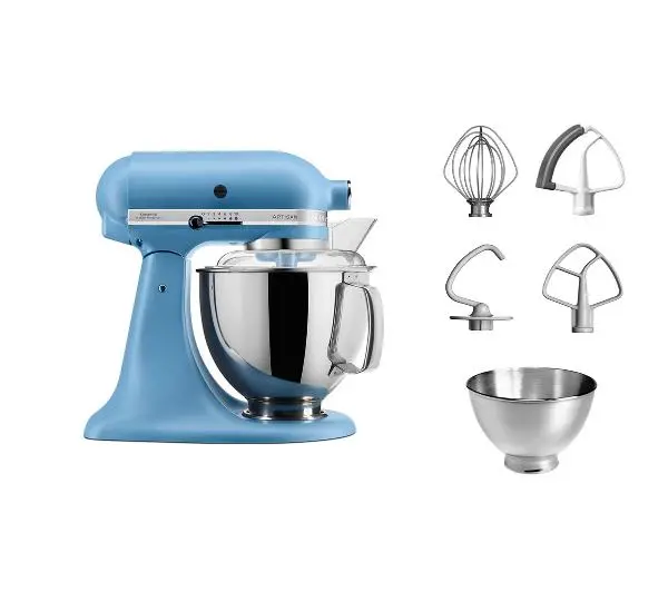 <h4>KitchenAid ARTISAN 5KSM175PS(blue velvet)</h4><p>Ikona designu, mikser planetarny produkowany w USA od 1937 roku, dostępny w ponad 20 kolorach, wykonany z metalu, z silnikiem o dużym momencie obrotowym z bezpośrednim napędem i przekładnią planetarną, czterema narzędziami, osłoną oraz dwiema dzieżami ze stali nierdzewnej.</p><h4>Poznaj KitchenAid ARTISAN 5KSM175PS</h4><a></a><h5>ZACHWYCAJĄCY DESIGN</h5><p>Ponadczasowy design, który nie zmienił się od 1937 roku i mnogość kolorów sprawiają, że mikser KitchenAid Artisan to prawdziwa perełka na blacie kuchennym. Wysoka bezawaryjność urządzenia to zasługa solidnej konstrukcji, wykonanej w całości z metalu. Jest łatwy w czyszczeniu. Połączenie optymalnej wagi z antypoślizgowymi gumowymi nóżkami sprawia, że sprzęt podczas pracy nie przesuwa się na kuchennym blacie.</p><a></a><h5>CICHY NAPĘD</h5><p>Poszukujesz uniwersalnego urządzenia do wielu czynności kuchennych? KitchenAid ARTISAN 5KSM175PS z ekonomicznym silnikiem 300 W oferuje odpowiedni zapas momentu obrotowego do wyrabiania ciast. Dzięki bezpośredniemu napędowi sprzęt zapewnia stabilną, cichą pracę oraz perfekcyjne mieszanie i napowietrzanie mas z wykorzystaniem 67-punktowego systemu planetarnego.</p><a></a><h5>FUNKCJONALNE AKCESORIA</h5><p>KitchenAid ARTISAN 5KSM175PS to propozycja dla entuzjastów domowych wypieków i makaronów – w zestawie z urządzeniem znajdziesz dwa mieszadła do łatwego przygotowania kremów budyniowych czy ucieranych babek, hak do wyrabiania ciasta oraz specjalną rózgę pozwalającą na szybkie ubicie piany z białek czy śmietany.</p><h4>KitchenAid ARTISAN 5KSM175PS z bliska</h4><h6>1 METALOWA KONSTRUKCJA</h6><p>Wykonany z odlewu ciśnieniowego korpus oraz solidne, metalowe koła zębate oferują długie i bezproblemowe działanie urządzenia, potwierdzone 5-letnią gwarancją producenta.</p><h6>2 SYSTEM PLANETARNY</h6><p>Mieszadła miksera poruszają się jednocześnie dookoła własnej osi i dookoła misy, co zwiększa efektywność łączenia składników i napowietrzania mas.</p><h6>3 PRAKTYCZNE WYPOSAŻENIE</h6><p>Dołączone do miksera dzieże robocze o pojemności 4,8 l oraz 3 l wykonano ze stali nierdzewnej, dzięki czemu nadają się do mycia w zmywarce.</p><h4>W opakowaniu KitchenAid ARTISAN 5KSM175PS</h4><h6>1Instrukcja obsługi w języku polskim</h6><h6>2Karta gwarancyjna</h6><h6>3Narzędzie do mieszania</h6><h6>4Narzędzie do mieszania mas cukierniczych FLEX</h6><h6>5Narzędzie do ubijania (rózga)</h6><h6>6Narzędzie do wyrabiania ciasta (hak)</h6><h6>7Dzieża 4,8 l z osłoną</h6><h6>8Dzieża 3 l</h6><h6>9Mikser planetarny</h6><h6>10Osłona na dzieżę</h6><h4>KitchenAid – marka godna zaufania</h4><p>5 lat gwarancji</p><p>Ultrawytrzymałe produkty ze stylowym wzornictwem</p><p>100 lat doświadczenia w produkcji akcesoriów kuchennych</p>