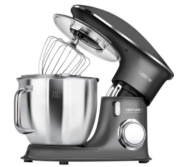 Mnogość kulinarnych możliwościRobot planetarny MRK‑232 misy ze stali nierdzewnej 2 misy ze stali nierdzewnej<p>W zestawie znajdują się dwie misy ze stali nierdzewnej o pojemności 7,0 l, w tym jedna wyposażona w praktyczną rączkę.</p>Wysoka moc 2400 W Wysoka moc 2400 W<p>Moc 2400 W zapewnia wydajne i niezawodne działanie urządzenia.</p>3 wymienne mieszadła, w tym mieszało z silikonowym wykończeniem 3 wymienne mieszadła, w tym mieszało z silikonowym wykończeniem<p>W zestawie znajdują się trzy mieszadła: hakowe, trzepakowe oraz mieszadło do mas wieloskładnikowych z silikonowym wykończeniem.</p>Akcesoria przystosowane do mycia w zmywarce Akcesoria przystosowane do mycia w zmywarce<p>Komfort użytkowania – wszystkie wymienne elementy nadają się do mycia w zmywarce.</p>My Perfect Moment:Kiedy gotowanie jest łatwe i przyjemneRobot planetarny MRK‑23 z dwiema misami ze stali nierdzewnej to idealne wsparcie w przygotowywaniu zachwycających wypieków i potraw bez zbędnego wysiłku. Kompaktowa konstrukcja łączy elegancki wygląd, wysoką moc i wszechstronność działania. Trzy wymienne końcówki umożliwiają łatwe miksowanie, mieszanie, rozdrabnianie oraz ubijanie mas na ciasta i sosy. System planetarny zapewnia ruch przystawek zarówno wokół misy, jak i wokół własnej osi, co gwarantuje idealne napowietrzenie i dokładne połączenie składników – bez grudek mąki czy masła. Silnik o mocy 2400 W utrzymuje stałą prędkość obrotową nawet przy pracy z trudnymi masami, co przekłada się na perfekcyjną konsystencję i wysoką jakość dań. Minimalistyczny design i kompaktowe wymiary sprawiają, że MRK‑23 świetnie wpasowuje się w każdą kuchenną przestrzeń.Kliknij w punkt z plusem, aby odkryć jego zawartość.<a> </a> Ruch planetarny przystawek<p>Mieszanie wielokierunkowe skutecznie napowietrza i precyzyjnie łączy wszystkie składniki.</p> Ruch planetarny przystawek<p>Mieszanie wielokierunkowe skutecznie napowietrza i precyzyjnie łączy wszystkie składniki.</p><a> </a> 6-stopniowa regulacja obrotów + funkcja PULSE<p>Dobierz prędkość pracy odpowiednią do rodzaju przygotowywanej potrawy.</p><a> </a> Antypoślizgowe nóżki<p>Stabilne i bezpieczne ustawienie robota na blacie podczas pracy.</p> Ruch planetarny przystawek<p>Mieszanie wielokierunkowe skutecznie napowietrza i precyzyjnie łączy wszystkie składniki.</p> 6-stopniowa regulacja obrotów + funkcja PULSE<p>Dobierz prędkość pracy odpowiednią do rodzaju przygotowywanej potrawy.</p> Antypoślizgowe nóżki<p>Stabilne i bezpieczne ustawienie robota na blacie podczas pracy.</p>Robot planetarny MRK‑23 2 misy ze stali nierdzewnej więcej ulubionych dań<p>Robot planetarny MRK-23 to połączenie funkcjonalności i nowoczesnego podejścia do gotowania. Dzięki dwóm misom ze stali nierdzewnej o pojemności 7,0 l – w tym jednej z poręczną rączką – możliwe jest sprawne przygotowywanie większych porcji oraz wygodne rozdzielenie etapów pracy, np. gdy osobno wyrabiane jest ciasto i lukier. Duża pojemność pozwala na więcej w krótszym czasie, bez konieczności ciągłego mycia misy. Dodatkowa osłona przeciwdziała rozchlapywaniu podczas miksowania, co zwiększa komfort i utrzymuje porządek wokół urządzenia.</p> Wysoka moc 2400 W moc, którą docenisz<p>Wysoka moc maksymalna 2400 W sprawia, że robot planetarny MRK-23 z łatwością radzi sobie z różnorodnymi zadaniami w kuchni – od wyrabiania ciasta chlebowego, przez ubijanie piany, po mieszanie wieloskładnikowych mas. Stała prędkość obrotowa utrzymywana nawet przy cięższych produktach gwarantuje odpowiednią konsystencję i wysoką jakość przygotowywanych potraw.</p> 3 wymienne mieszadła, w tym mieszało z silikonowym wykończeniem Końcówki na każde wyzwanie<p>W zestawie z robotem planetarnym znajdują się trzy wymienne końcówki, które można łatwo dopasować do rodzaju przygotowywanych potraw. Mieszadło do mas wieloskładnikowych doskonale łączy różnorodne składniki, sprawdza się także przy mieszaniu mielonego mięsa czy gęstych kremów. Wyprofilowany kształt i silikonowe ściągacze skutecznie zbierają ciasto z brzegów misy, zapewniając dokładne wymieszanie. Trzepak z gęsto osadzonymi pręcikami świetnie radzi sobie z ubijaniem śmietany, białek oraz przygotowywaniem ciast biszkoptowych i kremów maślanych. Mieszadło hakowe z kolei bez wysiłku wyrabia cięższe ciasta – na pizzę, pierogi czy faworki – gwarantując odpowiednią konsystencję i strukturę masy.</p> Akcesoria przystosowane do mycia w zmywarce czystość bez wysiłku<p>Możliwość mycia akcesoriów w zmywarce to wygodne rozwiązanie, które pozwala zaoszczędzić czas i energię. Wystarczy umieścić elementy w zmywarce, a wysoka temperatura skutecznie usunie resztki jedzenia i bakterie, gwarantując idealną czystość i gotowość do ponownego użycia.</p> Przytrzymaj palec na ikonie funkcji, aby poznać jej opis.Osłona na misę<p>Łatwe dozowanie składników podczas pracy urządzenia i mniejsze ryzyko rozchlapywania płynnych mas.</p>Zabezpieczenie przed włączeniem przy nieprawidłowym montażu urządzenia<p>Robot nie uruchomi się, jeśli którykolwiek z elementów zostanie zamontowany nieprawidłowo.</p>Silikonowa łopatka<p>Świetnie sprawdza się zarówno przy mieszaniu składników, jak i zgarnianiu resztek ciasta, kremów czy sosów ze ścianek misy.</p>Nowoczesny design<p>Minimalistyczny design urządzenia sprawia, że pełni ono również funkcję stylowego i nowoczesnego elementu wystroju kuchni.</p> Osłona na misę<p>Łatwe dozowanie składników podczas pracy urządzenia i mniejsze ryzyko rozchlapywania płynnych mas.</p> Zabezpieczenie przed włączeniem przy nieprawidłowym montażu urządzenia<p>Robot nie uruchomi się, jeśli którykolwiek z elementów zostanie zamontowany nieprawidłowo.</p> Silikonowa łopatka<p>Świetnie sprawdza się zarówno przy mieszaniu składników, ja