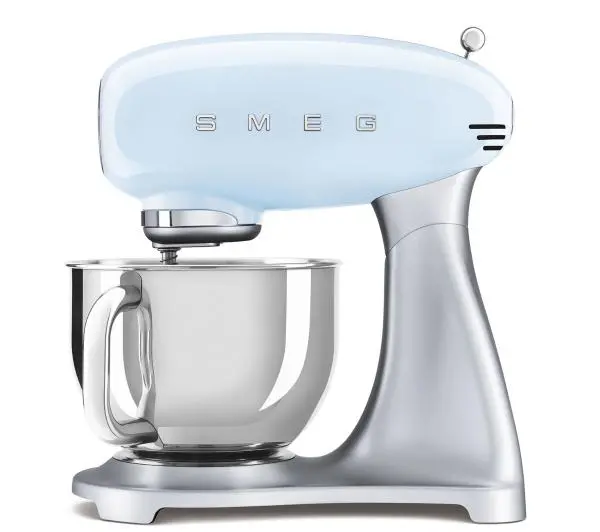 <h2>Smeg SMF02PBEU (niebieski)</h2><p>Smeg SMF02PBEU pomoże Ci w wielu kuchennych pracach – planetarny mikser wyrabia ciasta drożdżowe, umożliwia sprawne przygotowywanie deserów i okazuje się niezastąpiony przy robieniu pysznych sosów.</p><h2>Poznaj Smeg SMF02PBEU </h2><a></a><h3>STYLOWY I PRAKTYCZNY</h3><p>Mikser planetarny Smeg SMF02PBEU łączy w sobie ogromną funkcjonalność z zachwycającym wzornictwem. Urządzenie jest stylizowane na sprzęty kuchenne rodem z lat 50. XX stulecia – dzięki temu z powodzeniem wkomponujesz je w kuchnie urządzone w estetyce retro.</p><a></a><h3>MOCNY SILNIK</h3><p>Mikser planetarny cechuje się wysoką wydajnością pracy. Zawdzięcza się to zastosowanemu w urządzeniu silnikowi o mocy 800 W – zapewnia 10-stopniowe sterowanie prędkością mieszania. Z kolei funkcja Smooth Start umożliwia stopniowe uruchamianie miksowania, co pozwala na dokładne połączenie składników w misie.</p><a></a><h3>ZDOBYWCA NAGRÓD</h3><p>Miksery marki Smeg otrzymały kilka nagród na znaczących międzynarodowych konkursach, dzięki czemu cieszą się światowej klasy sławą. Jeśli więc chcesz mieć pewność, że mikser planetarny w Twojej kuchni wyróżnia się najwyższą jakością wykonania, postaw na model Smeg SMF02PBEU.</p><a></a><h3>PRAKTYCZNA RÓZGA</h3><p>W prezentowanym mikserze bez wysiłku ubijesz pianę, dokładnie połączysz płynne składniki czy też wymieszasz lekkie masy. Do tych zadań najlepsza okaże się rózga – wykonana ze stali nierdzewnej wyróżnia się nie tylko wydajną pracą, ale też wysoką trwałością.</p><a></a><h3>PRECYZYJNE MIESZANIE</h3><p>Wraz z mikserem otrzymasz też płaskie mieszadło wykonane z aluminium. Jego zadaniem jest dokładne mieszanie do uzyskania idealnie jednolitych mas. W związku z tym znajdzie zastosowanie przy robieniu perfekcyjnych biszkoptów i innych słodkości.</p><a></a><h3>MOŻLIWOŚĆ DOPOSAŻENIA O DODATKOWE AKCESORIA</h3><p>Kolejnym akcesorium do miksera planetarnego Smeg SMF02PBEU jest mieszadło z elastycznymi krawędziami. Doskonale nadaje się do mieszania różnego rodzaju mas i ubijania miękkich ciast, w których liczy się puszystość.</p><a></a><h3>WYRABIANIE CIASTA</h3><p>Uwielbiasz domowej roboty chleb? A może często robisz pizzę z własnego przepisu? Dzięki urządzeniu Smeg SMF02PBEU możesz zapomnieć o ręcznym, uciążliwym ugniataniu ciasta – mikser został wyposażony w solidny hak, które zrobi to za Ciebie!</p><a></a><h3>POJEMNA MISA</h3><p>Mieszanie sporej ilości ciasta czy kremu nie stanowi problemu dla prezentowanego miksera. Wszystko dzięki dużej misie o pojemności 4,8 l. Dzięki wykonaniu ze stali nierdzewnej cechuje się wysoką odpornością na uszkodzenia mechaniczne – możesz więc z niej korzystać z pełną swobodą.</p><a></a><h3>BEZ ROZPRYSKIWANIA</h3><p>Do misy wchodzącej w skład produktu Smeg SMF02PBEU dołączona została pokrywka, która zabezpiecza przed rozchlapywaniem się zawartości misy podczas miksowania. Przygotowany został w niej wlot pozwalający na wygodne dodawanie składników.</p><h2>Mikser planetarny Smeg SMF02PBEU z bliska</h2><h3>1 PORT DO AKCESORIÓW</h3><p>Mikser planetarny Smeg SMF02PBEU wyposażony został w port, w którym umieszcza się akcesoria – wymiana nasadek jest łatwa i przebiega bardzo sprawnie.</p><h3>2 DŹWIGNIA STERUJĄCA</h3><p>Prędkość pracy silnika możesz łatwo kontrolować, używając dużego, stalowego uchwytu – jest poręczny i wyróżnia się wysoką odpornością na korozję oraz uszkodzenia mechaniczne.</p><h3>3 EFEKTOWNY KORPUS</h3><p>W modelu Smeg SMF02PBEU zastosowano korpus wykonany z aluminium – jest trwały i dostępny w kilku wariantach kolorystycznych, aby można było łatwo dopasować mikser do wystroju kuchni.</p><h2>W opakowaniu Smeg SMF02PBEU </h2><h6>1Mikser planetarny</h6><h6>2Hak do zagniatania ciasta</h6><h6>3Końcówka do mieszania</h6><h6>4Końcówka do ubijania</h6><h6>5Misa robocza</h6><h6>6Instrukcja obsługi w języku polskim</h6><h6>7Karta gwarancyjna</h6><h2>Smeg – marka godna zaufania</h2><p>Na rynku od 1948 roku</p><p>16 filii na całym świecie</p><p>Włoski design</p>