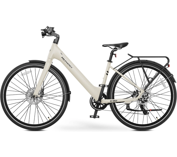 <h3>Lekka konstrukcja – łatwość prowadzenia i komfort</h3><p>Rower elektryczny C30 został zaprojektowany z myślą o osobach szukających lekkiego i funkcjonalnego roweru miejskiego. Kompaktowa i wyważona konstrukcja sprawia, że prowadzenie roweru jest intuicyjne i przyjemne, nawet w zatłoczonych ulicach miasta. Niska waga nie tylko ułatwia manewrowanie, ale także pozwala na łatwe przenoszenie roweru w razie potrzeby, co zwiększa komfort codziennego użytkowania.</p><h3>Ukryte wewnętrzne okablowanie – elegancja i mniej konserwacji</h3><p>Wewnętrzne prowadzenie kabli nadaje rowerowi nowoczesny i elegancki wygląd, jednocześnie chroniąc przewody przed zabrudzeniem i uszkodzeniami. Dzięki temu jazda staje się płynna, a codzienna obsługa roweru wymaga mniej uwagi i wysiłku. To rozwiązanie idealnie łączy estetykę z praktycznością, pozwalając cieszyć się pięknym designem bez kompromisów w funkcjonalności.</p><h3>Hydrauliczne hamulce tarczowe – bezpieczeństwo i precyzja</h3><p>Rower C30 został wyposażony w hydrauliczne hamulce tarczowe, które zapewniają niezawodną siłę hamowania i płynną kontrolę nad rowerem w każdych warunkach. Dzięki nim możesz bezpiecznie zatrzymać rower nawet przy dużej prędkości, co znacząco podnosi komfort i bezpieczeństwo jazdy w mieście i poza nim.</p><h3>Gładkie spawy – elegancja i trwałość aluminiowej ramy</h3><p>Aluminiowa rama roweru C30 wyróżnia się gładkimi, jednolitymi spawami, które nadają mu elegancki i nowoczesny wygląd. Kompaktowy design nie tylko cieszy oko, ale także poprawia ergonomię jazdy, sprawiając, że rower jest łatwy w prowadzeniu i manewrowaniu. To połączenie stylu i funkcjonalności idealnie sprawdza się w miejskich warunkach.</p><h3>8-biegowa przerzutka Shimano – wszechstronność w każdej trasie</h3><p>Dzięki 8-biegowej przerzutce Shimano, C30 oferuje elastyczność w różnych warunkach jazdy. Niezależnie od tego, czy pokonujesz płaskie ulice, czy strome podjazdy, system zmiany biegów zapewnia płynną i precyzyjną pracę, co pozwala na komfortową jazdę bez nadmiernego wysiłku.</p><p>Rower C30 to idealne rozwiązanie dla osób, które poszukują lekkiego, funkcjonalnego i eleganckiego roweru miejskiego. Połączenie lekkiej konstrukcji, nowoczesnego designu, niezawodnych hamulców i wszechstronnej przerzutki sprawia, że każda przejażdżka jest przyjemna, bezpieczna i wygodna. To rower, który sprosta codziennym wyzwaniom w mieście, łącząc styl z praktycznością.</p>