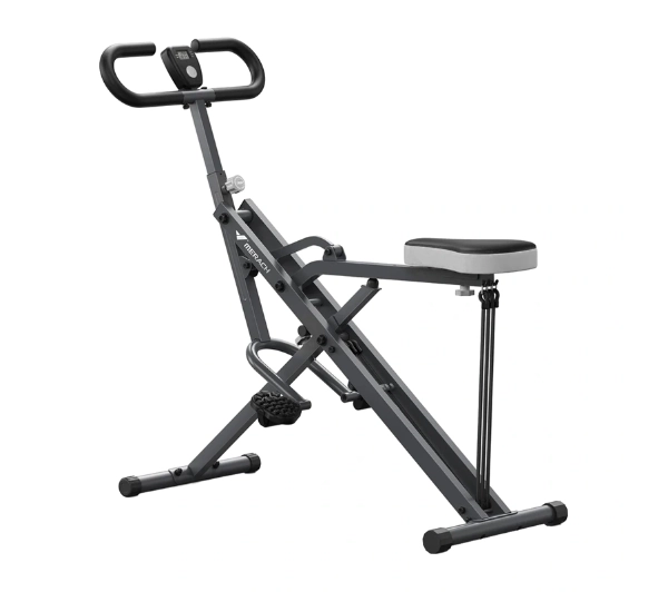 <h2>Maszyna do przysiadów MERACH MR-R07BH1</h2><p>MERACH MR-R07BH1 to urządzenie treningowe stworzone do wykonywania półprzysiadów, przysiadów głębokich oraz pełnych pod kątem 30°, 60° i 90°. Solidna stalowa konstrukcja wytrzymuje obciążenie do około 159 kg, zapewniając stabilność podczas ćwiczeń. Urządzenie oferuje 3 poziomy oporu, 4-stopniową regulację kierownicy oraz 5-stopniową regulację siedziska, dzięki czemu można łatwo dopasować ustawienia do wzrostu i preferencji użytkownika. Ergonomiczne pedały i wbudowany monitor treningowy pomagają trenować skutecznie, jednocześnie ograniczając przeciążenia kolan. To sprzęt, który umożliwia progresywny trening nóg, pośladków oraz mięśni core w komfortowych warunkach domowych.</p><h2>Trzy kąty dla różnej intensywności treningu</h2><p>Regulacja nachylenia w trzech ustawieniach – 30°, 60° i 90° – pozwala zmieniać zakres ruchu oraz poziom zaangażowania mięśni. Mniejszy kąt ułatwia rozpoczęcie treningu i pozwala stopniowo przyzwyczaić ciało do ćwiczeń. Większe ustawienia zwiększają aktywację pośladków, ud oraz tylnej części nóg. Dzięki temu możesz rozwijać siłę i wytrzymałość stopniowo, dopasowując trudność do swojej kondycji.</p><h2>Stabilna konstrukcja dla pewnego treningu</h2><p>Wytrzymała rama wykonana ze stali została zaprojektowana tak, aby zapewnić stabilność nawet podczas dynamicznych ćwiczeń. Konstrukcja ogranicza kołysanie urządzenia i poprawia kontrolę nad ruchem. Maksymalne obciążenie użytkownika to około 159 kg, pozwala trenować bez obaw o bezpieczeństwo sprzętu. Dzięki temu możesz skupić się na technice wykonywania przysiadów i systematycznym zwiększaniu intensywności.</p><h2>Komfort podczas każdej serii</h2><p>Szerokie, amortyzowane siedzisko o wysokiej sprężystości dopasowuje się do ciała i pomaga utrzymać wygodną pozycję podczas ćwiczeń. Teksturowane, antypoślizgowe pedały stabilizują stopy i zmniejszają ryzyko poślizgnięcia. Takie rozwiązanie poprawia kontrolę ruchu i pozwala wykonywać przysiady w bardziej płynny sposób. W rezultacie trening staje się bezpieczniejszy i bardziej komfortowy.</p><h2>Dopasowanie do wzrostu użytkownika</h2><p>Czterostopniowa regulacja uchwytów oraz pięciostopniowa regulacja siedziska pozwalają dopasować ustawienie urządzenia do wzrostu i budowy ciała. Odpowiednia konfiguracja pomaga utrzymać prawidłową biomechanikę ruchu podczas ćwiczeń. Dzięki temu zarówno osoby o wzroście około 160 cm, jak i wyższe mogą trenować w wygodnej i stabilnej pozycji. To rozwiązanie zwiększa efektywność ćwiczeń i ogranicza ryzyko przeciążeń.</p><h2>Trzy poziomy oporu do progresywnego treningu</h2><p>Urządzenie oferuje trzy poziomy intensywności, które pozwalają stopniowo zwiększać trudność ćwiczeń. Najniższy poziom sprawdzi się na początku treningów, pomagając aktywować mięśnie i nauczyć się prawidłowej techniki. Średni poziom zwiększa wysiłek i wspiera intensywniejszą pracę mięśni. Najwyższy poziom zapewnia największe obciążenie i stanowi wyzwanie dla osób bardziej zaawansowanych.</p><h2>Kontrola parametrów treningu</h2><p>Wbudowany monitor pokazuje najważniejsze informacje dotyczące aktywności. Na ekranie pojawiają się dane takie jak czas, prędkość, dystans, liczba powtórzeń oraz spalone kalorie. Wskaźnik ODO (odometer, licznik całkowitej liczby powtórzeń) pozwala śledzić łączną aktywność podczas korzystania z urządzenia. Dzięki temu łatwiej kontrolować intensywność treningu i obserwować postępy.</p><h2>Trening całego ciała z mniejszym obciążeniem stawów</h2><p>MERACH MR-R07BH1 umożliwia wzmocnienie nie tylko nóg i pośladków, ale także pleców, barków, bicepsów, przedramion oraz mięśni core. Konstrukcja prowadzi ruch w kontrolowany sposób, co pomaga zmniejszyć nacisk na stawy kolanowe w porównaniu do klasycznych przysiadów. Dzięki temu możesz ćwiczyć skutecznie i jednocześnie dbać o bezpieczeństwo układu ruchu. To rozwiązanie dla osób, które chcą rozwijać siłę i kondycję bez nadmiernego obciążania stawów.</p>