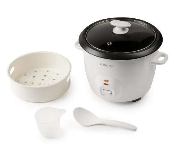 <h2>Domo DO9176RK</h2>Ryżowar Domo DO9176RK pozwala przygotować ryż taki, jak lubisz. W dołączonym do zestawu koszu do gotowania na parze ugotujesz zdrowe warzywa, a dzięki funkcji utrzymywania ciepła na talerz nałożysz danie o idealnej temperaturze. Misa pokryta teflonem gwarantuje łatwe mycie i nieprzywieranie jedzenia.Pojemność 1,3 l umożliwia przygotowanie kilku porcji ryżu lub innych produktów narazDzięki funkcji utrzymywania temperatury posiłek poczeka ciepły do momentu podaniaTeflonowa powłoka zapobiega przywieraniu jedzenia, a także ułatwia mycie naczynia<h2>Poznaj ryżowar Domo DO9176RK</h2> Pojemność 1,3 lDomo DO9176RK ma pojemność 1,3 litra. To wystarczająco dużo, żeby przygotować kilka porcji sypkiego ryżu. Urządzenie ma wyraźną podziałkę, dzięki której będziesz wiedzieć, ile wody trzeba wlać na wybraną ilość suchego produktu. Sugerowaną porcję ryżu odmierzysz w dołączonym do zestawu pojemniku z miarką. Funkcja utrzymywania temperaturyPrzygotowanie jednocześnie kilku składników na obiad bywa trudne. Dlatego zastosowana w ryżowarze funkcja utrzymywania temperatury jest bardzo pomocna. Nie dość, że urządzenie Domo DO9176RK da ci znać, gdy upłynie czas gotowania, to jeszcze możesz zostawić gotową potrawę i podtrzymywać jej temperaturę do czasu wyłożenia na talerz. Teflonowa powłokaMisa zastosowana w tym urządzeniu jest pokryta teflonową powłoką. Zaletą takiego rozwiązania jest to, że potrawy nie przywierają do garnka, więc mycie ryżowaru jest znacznie łatwiejsze i nie wymaga szorowania. Dzięki temu misa będzie ci służyć przez długi czas. Przezroczysta pokrywaMożesz skutecznie kontrolować przebieg gotowania bez konieczności podnoszenia pokrywy garnka Domo DO9176RK. Jest przezroczysta, w związku z czym bez problemu zajrzysz do środka naczynia. Niezależnie od tego, czy gotujesz ryż, czy np. warzywa na parze, będą one doskonale widoczne.<h2>Zawartość opakowania Domo DO9176RK</h2>W opakowaniu Ryżowar Kosz do gotowania na parze Łyżka MiarkaDomo – marka godna zaufaniaBelgijska marka znana w EuropieProdukty marki są dostępne i cenione w wielu europejskich krajachUgruntowana pozycja na rynkuProducent małych i dużych sprzętów domowych wysokiej jakości od 1986 rokuInnowacyjność i ekologiczne podejścieMarka ma na swoim koncie wiele nowatorskich rozwiązań i działa z dbałością o środowisko