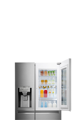 Dzięki funkcji InstaView oraz drzwiom Door-in-Door, lodówki side-by-side LG klasy Premium zapewniają szybki i łatwy dostęp do napojów i przekąsek.