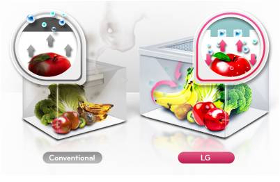 Specjalna kratowana pokrywa Moist Balance Crisper, na której osadza się, a następnie odparowuje nadmiar wilgoci. Dzięki temu owoce i warzywa dłużej zachowują swoją świeżość.