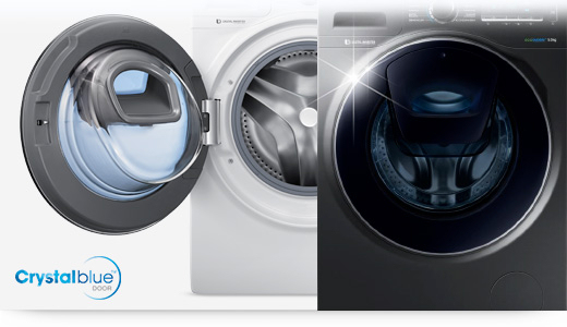 Błękitne, designerskie drzwi Crystal Blue oraz ozdobne pokrętło wyboru programów nadają pralce piękny, nowoczesny wygląd.