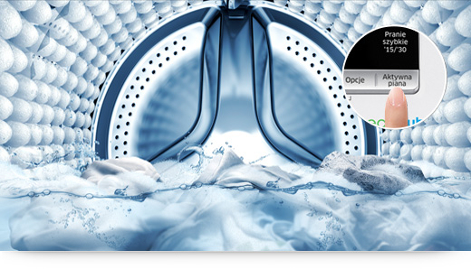 Funkcja pomaga usunąć najbardziej uporczywe plamy. Jeszcze przed rozpoczęciem cyklu prania, dodatkowa faza namaczania pozwoli aktywnym bąbelkom zmiękczyć zabrudzenia, czyniąc je łatwiejszymi do usunięcia. Bąbelki penetrują włókna tkanin, rozpuszczając przyczepiony do nich brud. Skutecznie usuwają nawet tak uporczywe zabarwienia, jak ślady po krwi, kakao, tłuszczu, owsiance, herbacie, winie, pomidorach, ołówku, błocie, makijażu, szmince i trawie.