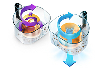 Siła ssąca wymusza cyrkulację cząsteczek kurzu w komorze wewnętrznej, powodując oddzielenie brudu i kurzu z obiegu powietrza. Unikniesz tym samym zatkania odkurzacza, dzięki czemu będzie sprawnie działał przez dłuższy czas.