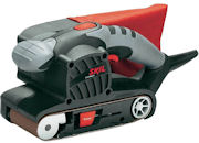 Szlifierka taśmowa Urządzenie służące do szlifowania płaskich, drewnianych powierzchni. Materiałem ściernym jest taśma szlifierska, zakładana na rolki. Szlifierki te posiadają dużą powierzchnię szlifierską i cechują się dużą wydajnością. |