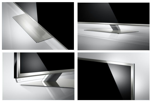 Wąska, matowana aluminiowa rama oraz ultracienka podstawa, obie z gładkim wykończeniem typu "faktury włosa" tworzą wygląd prosty i elegancki.