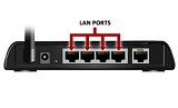 Port LAN - interfejs zewnętrzny służący do podłączenia urządzeń zewnętrznych (laptop, komputer, drukarka itp.) w celu udostępnienia połączenia z internetem. Wystarczy do niego podłączyć dane urządzenie bezpośrednio kablem (ethernet), aby uzyskać połączenie z internetem. Routery posiadają od jednego do czterech portów LAN. |