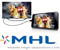 MHL (Mobile High Definition Link) to przewodowe rozwiązanie, które umożliwia dostęp do materiałów z telefonu lub tabletu na duzym ekranie w najwyższej jakości. Łącząc poprzez przewód MHL (sprzedawany oddzielnie) urządzenie mobilne i telewizor, możesz odtwarzać wszystkie materiały wideo, gry i fotografie bezpośrednio na ekranie telewizora. System MHL w prosty sposób powiela ekran urządzenia mobilnego, działając ze wszystkimi aplikacjami, a w trakcie podłączenia pozwala również ładować urządzenie. |