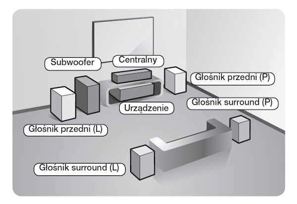 | Przykładowy rozstaw głośników w systemie 5.1 |