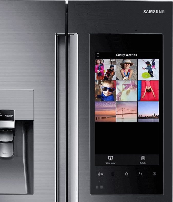 Zainstalowane wewnątrz urządzenia kamery pozwolą Ci sprawdzić zawartość lodówki bez konieczności otwierania drzwi, a zainstalowana na smartfonie aplikacja ułatwi zakupy umożliwiając zdalne zajrzenie do lodówki. Na ekranie lodówki możesz również stworzyć listę potrzebnych produktów i za pomocą telefonu skorzystać z niej podczas zakupów. Dzięki ekranowi możesz na drzwiach lodówki prowadzić kalendarz, tworzyć notatki oraz wiadomości do najbliższych. Już nie zapomnisz o zaplanowanych wydarzeniach i przekażesz innym najważniejsze informacje. Na wyświetlaczu możesz także oglądać zdjęcia, a połączenie z internetem pozwoli na szybkie i wygodne przeglądanie przepisów kulinarnych.
