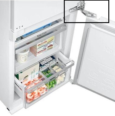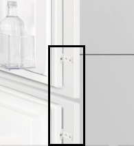 Zawiasy ślizgoweFront meblowy i lodówka mają oddzielne zawiasy. Przy otwieraniu i zamykaniu lodówki front meblowy przesuwa się po paskach (szynach) znajdujących się na drzwiach lodówki. |