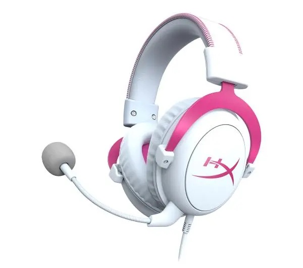<h2>HyperX Cloud II</h2> Bezprzewodowym modelu HyperX Cloud II wyposażone są w nowoczesny moduł sterowania audio z kartą dźwiękową USB, która wzmocnia wszystkie dźwięki oraz głos gracza. Zestaw posiada specjalnie zaprojektowany mikrofon z funkcją cyfrowej redukcji szumów. Można je podłączać do komputerów i konsol. Bezprzewodowe słuchawki, wyposażone w wydajną baterię, są zaprojektowane specjalnie dla wymagających graczy. Przestrzenny dźwięk dzięki technologii DTS Headphone: X, która dba o Twoje przeżycia podczas gry. Przetworniki 53 mm dodatkowo zapewniające immersyjny dźwięk najlepszej jakości. Odłączany mikrofon z cyfrową redukcją szumów i wskaźnikiem LED wyciszenia uatrakcyjni każdą rozrywkę. Wytrzymały aluminiowy pałąk zniesie nawet intensywne użytkowanie. Komfortowy i ergonomiczny kształt idealnie się dopasowuje do głowy, dzięki czemu słuchawki pozostają niewyczuwalne. <h2>Poznaj słuchawki HyperX Cloud II</h2> Bezprzewodowe połączenie W słuchawkach HyperX Cloud II zastosowano połączenie bezprzewodowe 2,4 GHz o niskim opóźnieniu. Gwarantuje ono do 30 godzin rozgrywek w dodatku bez konieczności podłączania przewodów. Zasięg słuchawek wynosi 20 metrów, więc możesz swobodnie poruszać się po mieszkaniu, nie tracąc łączności z innymi graczami. Przestrzenny dźwięk Przestrzenny dźwięk to zasługa technologii DTS Headphone: X. Dzięki precyzyjnej lokalizacji dźwięku i wirtualnej scenie dźwiękowej 3D, pomoże Ci ona całkowicie zanurzyć się w dźwięku – tak, jakbyś był dokładnie w centrum rozgrywki. Zapomnij o otaczającej Cię rzeczywistości i poczuj pełne spektrum realistycznych doznań. Wyjątkowy komfort W HyperX Cloud II zastosowano specjalną piankę, która zapamiętuje kształt, wzmagając przyjemność z kontaktu ze słuchawkami. Wykończenie z miękkiej, elastycznej imitacji skóry zapewniają komfort, o którym już krążą legendy. Co ważne, ten zestaw jest też niezwykle lekki. Jakość dźwięku W HyperX Cloud II zastosowane zostały przetworniki 53 mm, które zapewniają czysty, immersyjny dźwięk. Będzie Cię dosłownie opływał podczas rozgrywki, dzięki czemu zyskasz wrażenie, jakbyś był na polu bitwy czy w każdym innym miejscu, w którym rozgrywa się gra. Wytrzymały pałąk Aluminiowy pałąk jest wytrzymały i świetnie zniesie nawet intensywne użytkowanie. Ponadto jest też elastyczny, dzięki czemu HyperX Cloud II świetnie leżą na głowie i zapewniają wygodę dostosowując się do jej kształtu. Odłączany mikrofon Odłączany mikrofon z cyfrową redukcją szumów i ledowym wskaźnikiem wyciszenia został przystosowany do platformy Discord i TeamSpeak. HyperX Cloud II to niezawodne słuchawki, które pozwolą Ci być w stałym kontakcie z innymi graczami. <h2>Zawartość opakowania HyperX Cloud II (różowy)</h2> W opakowaniu Słuchawki Przewód audio Instrukcja obsługi HyperX – marka godna zaufania Jakość doceniana przez graczy na całym świecie Ponad 20 milionów sprzedanych zestawów słuchawkowych Marka specjalizująca się w produkcji sprzętu gamingowego Producent m.in. słuchawek, mikrofonów i klawiatur Lata doświadczeń Marka założona w 1991 roku