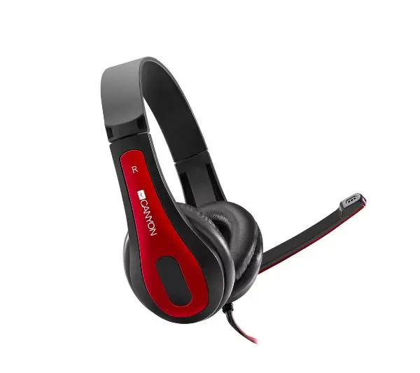 Słuchawki przewodowe z mikrofonem Canyon HSC-1 Nauszne Czarno-czerwony
