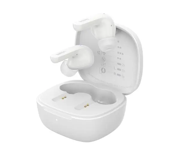 <h2>Belkin SoundForm Motion (czarny)</h2> Szukasz prostych słuchawek bezprzewodowych, które jednak zapewnią Ci długi czas pracy na jednym ładowaniu? Belkin SoundForm Motion okaże się dla Ciebie doskonałym wyborem. Zastosowane w tym modelu akumulatory pozwalają aż na 9 godzin odtwarzania, a ładujące etui dodatkowe 24 godziny. Nawet do 9 godzin odtwarzania non stop i dodatkowe 24 godziny z ładującym etui W każdej ze słuchawek zastosowano po 2 mikrofony, dlatego produkt idealnie sprawdza się przy rozmowach Technologia ENC blokuje dźwięki z otoczenia, by nie przeszkadzały Ci w trakcie słuchania muzyki Głośne i czyste brzmienie za sprawą głośników o średnicy 12 mm Słuchawki są wygodne i dobrze leżą w uszach, zapewniając dobrą izolację akustyczną Podłącz słuchawki do ładowania na 10 minut, aby zyskać dodatkową 1 godzinę odtwarzania <h2>Poznaj słuchawki bezprzewodowe Belkin SoundForm Motion</h2> Bardzo długi czas pracy Słuchawki bezprzewodowe Belkin SoundForm Motion mogą Ci towarzyszyć przez cały dzień poza domem, jak również sprawdzą się na długich wyjazdach z ograniczonym dostępem do prądu! Zastosowane w nich akumulatory zapewniają bowiem nawet do 9 godzin odtwarzania bez przerwy, a po rozładowaniu wystarczy je włożyć do etui, które zapewni im aż 24 godziny dodatkowej pracy. Wszystko to sprawia, że możesz się cieszyć nieograniczonym dostępem do ulubionej muzyki przez cały czas! Wyraziste rozmowy Często rozmawiasz przez telefon? A może szukasz słuchawek do prowadzonych w pracy wideokonferencji? W obu przypadkach Belkin SoundForm Motion spełni Twoje oczekiwania! W każdej ze słuchawek znajduje się zestaw dwóch mikrofonów, które z łatwością wychwycą Twój głos spośród hałasów z Twojego otoczenia. W związku z tym Twoi rozmówcy usłyszą każde wypowiadane przez Ciebie słowo, a komunikacja stanie się łatwiejsza i bardziej przejrzysta. 12-milimetrowe przetworniki Podczas słuchania muzyki oczekujesz, że dźwięk będzie głośny, czysty i pełen szczegółów? W takim razie zwróć uwagę na produkt Belkin SoundForm Motion. Zastosowane w nim głośniki o średnicy 12 mm mają ogromne możliwości, dlatego zapewniają znakomitą jakość brzmienia. Możesz liczyć na wyraziste, krystaliczne tony wysokie, głębokie i mocne basy oraz ciepłe dźwięki średnie, które razem łączą się w perfekcyjną harmonię tworzącą piękno każdego utworu. Tryb ENC Po skończonej pracy od razu chcesz się zrelaksować? Możesz to zrobić już podczas podróży komunikacją do domu, dzięki zastosowanemu w urządzeniu Belkin SoundForm Motion trybowi ENC. Dźwięki niemu odgłosy z otoczenia są blokowane i nie docierają do Twoich uszu, więc możesz się skupić na muzyce, nawet jeśli jedziesz pociągiem lub zatłoczonym tramwajem. Prawdziwie bezprzewodowe W słuchawkach bezprzewodowych Belkin SoundForm Motion umieszczono nowoczesny moduł Bluetooth 5.2 gwarantujący bezproblemowe parowanie z innymi urządzeniami, doskonałą jakość przesyłanego dźwięku oraz zasięg na ok. 10 metrów! Oznacza to, że możesz odłożyć smartfon na półkę, założyć słuchawki i w pełni swobodnie przemieszczać się po mieszkaniu. Używaj jednej słuchawki Belkin SoundForm Motion oferuje pracę w trybie mono, a zatem możesz korzystać z tylko jednej słuchawki, drugą pozostawiając w etui. Takie rozwiązanie pozwoli Ci na zachowanie kontaktu z otoczeniem i jednoczesne słuchanie muzyki. Ma jeszcze jedną zaletę – umożliwia znaczące wydłużenie czasu odtwarzania bez konieczności ładowania urządzenia! Perfekcyjne dopasowanie Wraz z urządzeniem Belkin SoundForm Motion otrzymasz zestaw adapterów w różnych rozmiarach, za sprawą których z łatwością dopasujesz słuchawki do kanałów usznych. Tym samym zyskasz na komforcie codziennego słuchania muzyki, nawet przy wielogodzinnym odtwarzaniu albumów ulubionych artystów. Dobre dopasowanie słuchawek to również lepsza izolacja dźwięków z otoczenia! Szybkie ładowanie W trakcie ważnej rozmowy lub słuchania wciągającego audiobooka rozładowały Ci się słuchawki? W przypadku modelu Belkin SoundForm Motion możesz błyskawicznie przywrócić im energię do działania! Podłącz go na jedyne 10 minut do ładowania, a zyskasz dodatkową 1 godzinę odtwarzania. Dostosuj dźwięk Chcesz, by Twoja muzyka brzmiała dokładnie tak, jak powinna, bez względu na to, czy aktualnie słuchasz największych popowych hitów z radia, czy też odtwarzasz ciężkie, rockowe nuty? W słuchawkach bezprzewodowych Belkin SoundForm Motion masz do dyspozycji aż 3 ustawienia korektora dźwięku, za pomocą którego możesz łatwo i szybko zmienić parametry pracy urządzenia, tak, by z każdej piosenki wydobyć wszystko to, co najlepsze! <h2>Zawartość opakowania Belkin SoundForm Motion</h2> W opakowaniu Słuchawki bezprzewodowe Adaptery douszne (S, M, L) Etui ładujące Przewód USB Instrukcja obsługi Belkin – marka godna zaufania Znana i lubiana marka Amerykański producent akcesoriów komputerowych o międzynarodowym zasięgu Wieloletnie doświadczenie Firma obecna na rynku od 1983 roku Produkty doceniane przez konsumentów Innowacyjne technologie ładowania oraz ochrony urządzeń