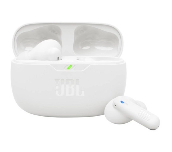 <h2>JBL Vibe Beam 2 Biały</h2>Słuchawki bezprzewodowe JBL Vibe Beam 2 to niezastąpiony towarzysz codzienności dla każdego audiofila. Zapewniają wciągający dźwięk z mocnym basem, a dzięki wbudowanym mikrofonom pozwalają także prowadzić wyraźne rozmowy telefoniczne.Zanurz się w świecie ekscytujących dźwięków z technologią JBL Pure Bass (odpowiadającą za basy)Aktywna redukcja hałasu z funkcją Smart Ambient skutecznie wycisza odgłosy otoczenia4 wbudowane mikrofony wyraźnie odbierają i przesyłają głos podczas rozmów telefonicznychPłynnie przełączaj się między dwoma sparowanymi urządzeniami dzięki funkcji połączenia wielopunktowegoBezproblemowe parowanie za pomocą jednego dotknięciaSzybkie ładowanie pozwala w krótkim czasie przygotować słuchawki do dalszej pracy<h2>Poznaj słuchawki bezprzewodowe JBL Vibe Beam 2</h2> Elektryzujące basyJBL Vibe Beam 2 zrewolucjonizują Twoje doświadczenia z dźwiękiem! Te słuchawki bezprzewodowe z przetwornikami o średnicy 8 milimetrów oferują wciągające i szczegółowe brzmienie. Delektuj się bogatym audio niezależnie od tego, jaki gatunek muzyczny preferujesz. Dźwięk JBL Pure Bass w szczególności docenią fani wyrazistych, dudniących basów. Dzięki nim każdy utwór nabiera niespotykanej dotąd magii! Wycisz otoczeniePrzenieś się do świata ulubionych dźwięków bez względu na to, gdzie jesteś – w zatłoczonym pomieszczeniu, pociągu czy w pobliżu ruchliwej ulicy. Słuchawki bezprzewodowe JBL Vibe Beam 2 zostały wyposażone w aktywną redukcję hałasu. Szumy i inne odgłosy dobiegające z otoczenia są skutecznie wyłapywane i blokowane. Funkcja Smart Ambient pozwala regulować poziom wyciszenia świata zewnętrznego. Słuchawki mogą częściowo przepuszczać dźwięki, gdy chcesz pozostać świadomym tego, co dzieje się wokół. Rozmawiaj bez zakłóceńPozostań w kontakcie z bliskimi i ciesz się wyraźnymi połączeniami telefonicznymi w każdym miejscu. Na słuchawkach JBL Vibe Beam 2 producent umieścił 4 mikrofony, które wyłapują Twój głos podczas rozmowy i oddzielają go od hałasów z zewnątrz, takich jak szum wiatru czy odgłosy samochodów. Dźwięki z otoczenia są wyeliminowane, dzięki czemu rozmówca może słyszeć Cię głośno i wyraźnie. Połączenie wielopunktoweJBL Vibe Beam 2 obsługują funkcję wielopunktowego połączenia Bluetooth. Oznacza to, że możesz sparować słuchawki z dwoma urządzeniami jednocześnie, na przykład ze swoim smartfonem i laptopem, a następnie szybko i bez wysiłku przełączać się pomiędzy nimi, aby wybrać źródło dźwięku. Takie rozwiązanie znacznie zwiększa komfort podczas codziennego użytkowania. Łatwe parowanieTechnologie Fast Pair i Swift Pair w słuchawkach bezprzewodowych JBL Vibe Beam 2 usprawniają proces parowania ich z innymi urządzeniami. Aby rozpocząć odtwarzanie dźwięków musisz tylko wyciągnąć je z etui i połączyć z wybranym urządzeniem za pomocą zaledwie jednego kliknięcia. Ciesz się muzyką, kiedy tylko chcesz – bez zbędnego oczekiwania! Szybkie ładowanieFunkcję szybkiego ładowania docenisz w sytuacjach, gdy liczy się każda minuta. Musisz zaraz wyjść z domu, a bateria w słuchawkach wymaga uzupełnienia? Potrzeba jedynie 10 minut ładowania na przewodzie USB (Universal Serial Bus) typu C, aby zyskać do 3 godzin odtwarzania przy wyłączonej funkcji aktywnej redukcji szumów. Gotowe na wyzwaniaJBL Vibe Beam 2 to słuchawki gotowe na każde wyzwanie! Urządzenie odznacza się odpornością na kurz i wodę zgodną z normą IP54 (częściową pyłoszczelność i ochronę przed bryzgami wody padającymi z dowolnego kierunku), dzięki czemu może towarzyszyć Ci w rozmaitych przygodach. Nie musisz się o nie martwić, gdy słuchasz muzyki podczas intensywnego treningu lub poza domem w deszczowe i wietrzne dni. Wytrzymała konstrukcja sprawdza się nawet w trudnych warunkach atmosferycznych. Sterowanie w aplikacjiAplikacja JBL Headphones przeniesie Twoje wrażenia słuchowe na wyższy poziom! Za jej pomocą możesz spersonalizować brzmienie, korzystając z korektora dźwięku i dostępnych trybów odtwarzania. Aplikacja oferuje także relaksacyjne dźwięki tła i powiadomienia głosowe w wielu językach. Wszystko po to, aby użytkowanie słuchawek bezprzewodowych JBL Vibe Beam 2 było jeszcze łatwiejsze i przyjemniejsze!<h2>Zawartość opakowania JBL Vibe Beam 2</h2>W opakowaniu Słuchawki bezprzewodowe Adaptery douszne (S, M, L) Etui ładujące Przewód USB-C (Universal Serial Bus Type C) Instrukcja obsługiJBL – marka godna zaufaniaMarka z amerykańskimi korzeniamiNależąca do Harman International Industries pod skrzydłami Samsung ElectronicsSpecjalista w produkcji sprzętu audioProducent doceniany przez profesjonalistów i audiofilówNa rynku od 1946 rokuZałożyciel marki stworzył dźwięk do pierwszego filmu w historii kina