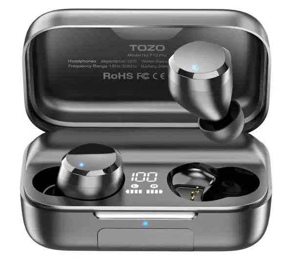 Słuchawki bezprzewodowe Tozo T12 Pro Dokanałowe Bluetooth 5.3 Czarny