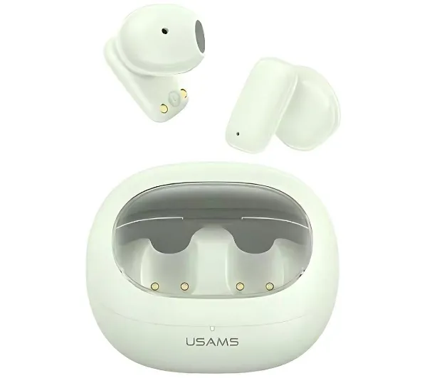 <p> </p><h3>USAMS Słuchawki Bluetooth 5.3 TWS TD Series bezprzewodowe</h3> <h3>Automatyczne parowanie i przestrzenne brzmienie</h3><p>Słuchawki marki USAMS łączą się z urządzeniem automatycznie po wyjęciu z etui, co skraca czas rozpoczęcia użytkowania. Dźwięk rozchodzi się równomiernie, tworząc wrażenie wypełnienia przestrzeni. Zastosowany dźwięk stereo Surround 3D, czyli dźwięk przestrzenny trójwymiarowy, wspiera odbiór nagrań z wyraźnym poczuciem kierunku. Rozwiązanie to sprawdza się podczas słuchania muzyki, oglądania filmów oraz korzystania z multimediów. Całość została zaprojektowana z myślą o stabilnym i płynnym odsłuchu.</p><h3>Konstrukcja i jakość dźwięku</h3><p>Dynamiczny głośnik o średnicy 13 milimetrów odpowiada za czytelne detale oraz miękkie wokale. Półdouszna konstrukcja oraz waga pojedynczej słuchawki wynosząca około 3,6 grama sprzyjają komfortowi nawet przy dłuższym noszeniu. Obudowa wykonana z tworzyw PC (poliwęglan) oraz ABS (akrylonitryl-butadien-styren) wspiera trwałość produktu. Stosunek sygnału do szumu przekraczający 75 decybeli oraz impedancja 32 omy wpływają na klarowność dźwięku.</p><h3>Czas pracy i obsługa</h3><p>Słuchawki umożliwiają odtwarzanie muzyki przez około 5 godzin, a etui ładujące wydłuża czas pracy w codziennym użytkowaniu. Pojemność baterii słuchawek wynosi 30 mAh (miliamperogodzin), natomiast etui 230 mAh. Łączność realizowana jest za pomocą technologii Bluetooth (bezprzewodowa technologia łączności krótkiego zasięgu) w wersji 5.3, z zasięgiem do 10 metrów. Sterowanie dotykowe reaguje na lekkie dotknięcia, umożliwiając obsługę funkcji bez przycisków.</p><table> <tbody> <tr> <td colspan="2"> <h3>Dane Techniczne</h3> </td> </tr> <tr> <td>Marka</td> <td>USAMS</td> </tr> <tr> <td>Materiał</td> <td>PC+ABS</td> </tr> <tr> <td>Kolor</td> <td>Zielony</td> </tr> <tr> <td>Wymiary etui ładującego</td> <td>27*46*55 mm</td> </tr> <tr> <td>Średnica głośnika</td> <td>13 mm</td> </tr> <tr> <td>SNR</td> <td>> 75 dB</td> </tr> <tr> <td>Impedancja</td> <td>32 Ω</td> </tr> <tr> <td>Pojemność baterii słuchawek</td> <td>30 mAh</td> </tr> <tr> <td>Czas odtwarzania</td> <td>5 godz</td> </tr> <tr> <td>Pojemność baterii etui ładującego</td> <td>230 mAh</td> </tr> <tr> <td>Wejście etui ładującego</td> <td>5V-1A</td> </tr> <tr> <td>Waga</td> <td>Około 32 g</td> </tr> <tr> <td>Zasięg połączenia</td> <td>≤10 m</td> </tr> <tr> <td>Czułość głośnika</td> <td>108db±3</td> </tr> <tr> <td>Pasmo przenoszenia</td> <td>20-20000 Hz</td> </tr> <tr> <td>Wersja BT</td> <td>5.3</td> </tr> <tr> <td>Czas ładowania słuchawek</td> <td>Około 1,5 godziny</td> </tr> <tr> <td>Czas dzwonienia</td> <td>3 godziny</td> </tr> <tr> <td>Czas ładowania etui</td> <td>Około 1,5 godziny</td> </tr> <tr> <td>Zgodność</td> <td>Do telefonów/tabletów/laptopów z funkcją BT</td> </tr> </tbody></table>