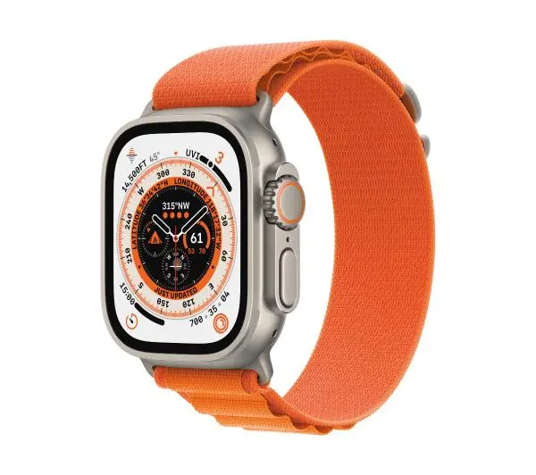 <h2>Apple Watch Ultra GPS + Cellular 49mm koperta tytanowa + opaska M (pomarańczowy)</h2>Najnowszy zegarek Apple Watch Ultra to wyjątkowe urządzenie, które całkowicie zmieni sposób, w jaki korzystasz ze swojego smartfona z logiem nadgryzionego jabłka. Duża tytanowa koperta, certyfikat IPX 64 oraz praca na baterii do 36 godzin sprawiają, że zegarek idealnie nadaje się dla osoby aktywnej oraz poszukującej najwyższej jakości produktów. Koperta 49 mm – ciesz się dobrą widocznością oraz najjaśniejszym wyświetlaczem w historii Apple WatchWytrzymałość – zegarek jest wyposażony w certyfikat IPX 64 (-20°C do 55°C)3 mikrofony – jeszcze wyraźniejsza rozmowa bez użycia rąkPartner treningowy – zegarek posiada wiele funkcji usprawniających sesje treningowePomiar ważnych parametrów – smartwatch mierzy Twoje natlenienie krwi oraz EKGDłuższa praca – wydajna bateria zapewnia teraz pracę do 36 godzin bez konieczności ładowaniaWykrywanie wypadków – skorzystaj z automatycznej pomocy w sytuacji kryzysowejTryb nocny – skorzystaj z tarczy-przewodnika, która jest przystosowana do pracy w niedostatecznym oświetleniu<h2>Poznaj zegarek Apple Watch Ultra</h2> Tytanowa kopertaKoperta wykonana z tytanu, która posiada zegarek Apple Watch Ultra to nie tylko wyjątkowa odporność na wszelkiego rodzaju uszkodzenia, ale również niepowtarzalny styl. Podwyższone brzegi koperty obejmują szafirowe szkło tak, by chronić krawędzie podczas upadku lub uderzenia. Powiększone zostało też pokrętło Digital Crown, które teraz jest jeszcze łatwiejsze w używaniu w rękawiczkach. Zegarek jest przystosowany do niemal każdej sytuacji, w jakiej możesz się znaleźć. Nowy wyświetlaczPraca w pełnym słońcu to dla nowego Apple Watch Ultra żaden problem. Wszystko dzięki niegasnącemu ekranowi wykonanemu w technologii Retina świecącemu w 200 nitach. To dwa razy więcej niż w poprzednich modelach smartwatch od Apple. Większy ekran to również więcej danych treningowych oraz bardziej rozbudowane tarcze uatrakcyjniające wygląd urządzenia. Idealny dla aktywnychNowy smartwatch od Apple zadba o Twoją kondycję i pomoże w codziennych sesjach treningowych. Specjalne pierścienie aktywności zbierają dane, by na koniec dnia przedstawić Ci raport i ustalić nowe cele dzienne. Nagrody oraz spersonalizowane porady zwiększają motywację do aktywnego trybu życia. Dodatkowo wbudowane treningi pokierują Cię podczas uprawiania ulubionego sportu i sprawią, że będziesz osiągać jeszcze lepsze wyniki. Przycisk czynnościŚwieżo wprowadzony przycisk czynności pozwala sterować wieloma funkcjami zegarka w łatwy i szybki sposób. Przycisk jest programowalny i możesz wykorzystać do monitorowania treningu oraz oznaczania punktów trasy w aplikacji Kompas. Zdecyduj, jak chcesz go użyć. Pomiar parametrów organizmuZegarek Apple Watch Ultra jest wyposażony w czujnik oraz aplikację, które mierzą nasycenie tlenu w Twojej krwi, co daje pogląd na ogólny stan zdrowia. Przeprowadź też pomiar EKG podobny do tego wykonywanego przez elektrokardiogram1. Pomoc w wypadkuApple Watch Ultra potrafi teraz rozpoznać rodzaj poważnego zdarzenia, któremu uległeś i automatycznie nawiązać połączenie z numerem alarmowym. Co więcej, urządzenie przekaże służbom Twoje położenie oraz prześle powiadomienia do wybranych kontaktów2. Długa pracaWyprawa w góry lub pobyt w miejscu z ograniczonym dostępem do prądu? Dla Apple Watch Ultra to żaden problem! Wszystko dzięki wydajniejszej baterii, która zapewnia pracę do 36 godzin w trybie normalnym oraz do 60 w trybie niskiego zużycia energii3. Dopasowany do potrzebBez względu na to, jaką dyscyplinę sportu uprawiasz, masz do dyspozycji wiele dodatkowych pasków, które są w pełni przystosowane do rodzaju Twojej ulubionej aktywności fizycznej. Ciesz się zegarkami dopasowanymi do Twojego stylu oraz sposobu uprawiania sportu. Wystarczy tylko zegarekPełna swoboda działania jest teraz możliwa z samym zegarkiem Apple Watch Ultra z dostępem do sieci komórkowej. Szereg funkcji związanych z bezpieczeństwem zapewni Ci spokój podczas podróży lub uprawiania ulubionej dyscypliny4. Finanse pod kontroląPłać wygodnie dzięki aplikacji Wallet, która czuwa nad bezpieczeństwem Twoich pieniędzy. Wystarczy tylko, że przyłożysz zegarek Apple Watch Ultra do terminala płatniczego, by szybko dokonać transakcji i cieszyć się zakupami. Wciśnij dwa razy boczny przycisk, by uzyskać dostęp do portfela, wybierz kartę i gotowe5. Najlepsza trasaZegarek wskaże Ci drogę, jeśli się zgubisz. Sprawdź aplikację Mapy i poznaj wskazówki dojazdu do konkretnego miejsca. Bez względu na to, czy podróżujesz pieszo, rowerem, czy samochodem, Mapy znają drogę, której szukasz. Krótkie stuknięcie w nadgarstek przypomni Ci, że czas na wykonanie zakrętu. 6 Pobieraj z App StoreW App Store znajdziesz wiele przydatnych aplikacji rozszerzających funkcjonalność Twojego zegarka Apple Watch Ultra. Pobieraj je bezpośrednio na urządzenie i sprawdź, jak wiele dodatkowych możliwości kryje się w tym niezwykłym smartwatchu. Wejdź do App Store już dzisiaj i wybierz to, czego potrzebujesz.6<h2>Zawartość opakowania Apple Watch Ultra</h2>W opakowaniu Apple Watch Ultra Instrukcja Karta gwarancyjna Przewód USB-C do ładowania Apple Watch podłączany magnetycznie (1 m)<h2>Porównanie smartwatchy</h2><table> <thead> <tr> <td> </td> <td> Oglądany produkt Apple Watch Ultra </td> <td> Apple Watch SE </td> <td> Apple Watch Series 8 </td> </tr> </thead> <tbody> <tr> <td>Koperta</td> <td> Koperta 49 mm Płaskie przednie szkło szafirowe z ochroną krawędzi wyświetlacza </td> <td> Koperta 44 mm lub 40 mm </td> <td> Koperta 45 mm lub 41 mm Wyświetlacz sięgający krawędzi </td> </tr> <tr> <td>Wyświetlacz</td> <td> Niegasnący wyświetlacz Retina Jasność do 2000 nitów Niemal 27% większa powierzchnia ekranu niż w Apple Watc