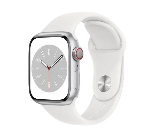 Apple Watch Series 8 GPS - Cellular 45mm koperta z aluminium srebrny - pasek sportowy biały