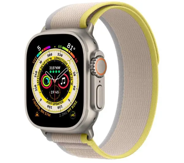 <h2>Apple Watch Ultra GPS + Cellular 49mm koperta tytanowa + opaska Trail M/L (żółto-beżowy)</h2>Najnowszy zegarek Apple Watch Ultra to wyjątkowe urządzenie, które całkowicie zmieni sposób, w jaki korzystasz ze swojego smartfona z logiem nadgryzionego jabłka. Duża tytanowa koperta, certyfikat IPX 64 oraz praca na baterii do 36 godzin sprawiają, że zegarek idealnie nadaje się dla osoby aktywnej oraz poszukującej najwyższej jakości produktów. Koperta 49 mm – ciesz się dobrą widocznością oraz najjaśniejszym wyświetlaczem w historii Apple WatchWytrzymałość – zegarek jest wyposażony w certyfikat IPX 64 (-20°C do 55°C)3 mikrofony – jeszcze wyraźniejsza rozmowa bez użycia rąkPartner treningowy – zegarek posiada wiele funkcji usprawniających sesje treningowePomiar ważnych parametrów – smartwatch mierzy Twoje natlenienie krwi oraz EKGDłuższa praca – wydajna bateria zapewnia teraz pracę do 36 godzin bez konieczności ładowaniaWykrywanie wypadków – skorzystaj z automatycznej pomocy w sytuacji kryzysowejTryb nocny – skorzystaj z tarczy-przewodnika, która jest przystosowana do pracy w niedostatecznym oświetleniu<h2>Poznaj zegarek Apple Watch Ultra</h2> Tytanowa kopertaKoperta wykonana z tytanu, która posiada zegarek Apple Watch Ultra to nie tylko wyjątkowa odporność na wszelkiego rodzaju uszkodzenia, ale również niepowtarzalny styl. Podwyższone brzegi koperty obejmują szafirowe szkło tak, by chronić krawędzie podczas upadku lub uderzenia. Powiększone zostało też pokrętło Digital Crown, które teraz jest jeszcze łatwiejsze w używaniu w rękawiczkach. Zegarek jest przystosowany do niemal każdej sytuacji, w jakiej możesz się znaleźć. Nowy wyświetlaczPraca w pełnym słońcu to dla nowego Apple Watch Ultra żaden problem. Wszystko dzięki niegasnącemu ekranowi wykonanemu w technologii Retina świecącemu w 200 nitach. To dwa razy więcej niż w poprzednich modelach smartwatch od Apple. Większy ekran to również więcej danych treningowych oraz bardziej rozbudowane tarcze uatrakcyjniające wygląd urządzenia. Idealny dla aktywnychNowy smartwatch od Apple zadba o Twoją kondycję i pomoże w codziennych sesjach treningowych. Specjalne pierścienie aktywności zbierają dane, by na koniec dnia przedstawić Ci raport i ustalić nowe cele dzienne. Nagrody oraz spersonalizowane porady zwiększają motywację do aktywnego trybu życia. Dodatkowo wbudowane treningi pokierują Cię podczas uprawiania ulubionego sportu i sprawią, że będziesz osiągać jeszcze lepsze wyniki. Przycisk czynnościŚwieżo wprowadzony przycisk czynności pozwala sterować wieloma funkcjami zegarka w łatwy i szybki sposób. Przycisk jest programowalny i możesz wykorzystać do monitorowania treningu oraz oznaczania punktów trasy w aplikacji Kompas. Zdecyduj, jak chcesz go użyć. Pomiar parametrów organizmuZegarek Apple Watch Ultra jest wyposażony w czujnik oraz aplikację, które mierzą nasycenie tlenu w Twojej krwi, co daje pogląd na ogólny stan zdrowia. Przeprowadź też pomiar EKG podobny do tego wykonywanego przez elektrokardiogram1. Pomoc w wypadkuApple Watch Ultra potrafi teraz rozpoznać rodzaj poważnego zdarzenia, któremu uległeś i automatycznie nawiązać połączenie z numerem alarmowym. Co więcej, urządzenie przekaże służbom Twoje położenie oraz prześle powiadomienia do wybranych kontaktów2. Długa pracaWyprawa w góry lub pobyt w miejscu z ograniczonym dostępem do prądu? Dla Apple Watch Ultra to żaden problem! Wszystko dzięki wydajniejszej baterii, która zapewnia pracę do 36 godzin w trybie normalnym oraz do 60 w trybie niskiego zużycia energii3. Dopasowany do potrzebBez względu na to, jaką dyscyplinę sportu uprawiasz, masz do dyspozycji wiele dodatkowych pasków, które są w pełni przystosowane do rodzaju Twojej ulubionej aktywności fizycznej. Ciesz się zegarkami dopasowanymi do Twojego stylu oraz sposobu uprawiania sportu. Wystarczy tylko zegarekPełna swoboda działania jest teraz możliwa z samym zegarkiem Apple Watch Ultra z dostępem do sieci komórkowej. Szereg funkcji związanych z bezpieczeństwem zapewni Ci spokój podczas podróży lub uprawiania ulubionej dyscypliny4. Finanse pod kontroląPłać wygodnie dzięki aplikacji Wallet, która czuwa nad bezpieczeństwem Twoich pieniędzy. Wystarczy tylko, że przyłożysz zegarek Apple Watch Ultra do terminala płatniczego, by szybko dokonać transakcji i cieszyć się zakupami. Wciśnij dwa razy boczny przycisk, by uzyskać dostęp do portfela, wybierz kartę i gotowe5. Najlepsza trasaZegarek wskaże Ci drogę, jeśli się zgubisz. Sprawdź aplikację Mapy i poznaj wskazówki dojazdu do konkretnego miejsca. Bez względu na to, czy podróżujesz pieszo, rowerem, czy samochodem, Mapy znają drogę, której szukasz. Krótkie stuknięcie w nadgarstek przypomni Ci, że czas na wykonanie zakrętu. 6 Pobieraj z App StoreW App Store znajdziesz wiele przydatnych aplikacji rozszerzających funkcjonalność Twojego zegarka Apple Watch Ultra. Pobieraj je bezpośrednio na urządzenie i sprawdź, jak wiele dodatkowych możliwości kryje się w tym niezwykłym smartwatchu. Wejdź do App Store już dzisiaj i wybierz to, czego potrzebujesz.6<h2>Zawartość opakowania Apple Watch Ultra</h2>W opakowaniu Apple Watch Ultra Instrukcja Karta gwarancyjna Przewód USB-C do ładowania Apple Watch podłączany magnetycznie (1 m)<h2>Porównanie smartwatchy</h2><table> <thead> <tr> <td> </td> <td> Oglądany produkt Apple Watch Ultra </td> <td> Apple Watch SE </td> <td> Apple Watch Series 8 </td> </tr> </thead> <tbody> <tr> <td>Koperta</td> <td> Koperta 49 mm Płaskie przednie szkło szafirowe z ochroną krawędzi wyświetlacza </td> <td> Koperta 44 mm lub 40 mm </td> <td> Koperta 45 mm lub 41 mm Wyświetlacz sięgający krawędzi </td> </tr> <tr> <td>Wyświetlacz</td> <td> Niegasnący wyświetlacz Retina Jasność do 2000 nitów Niemal 27% większa powierzchnia ekranu niż w