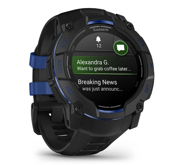 <h2>Garmin INSTINCT 3, 50MM, BLUE</h2><h3>Wytrzymałość w każdych warunkach</h3><p>Garmin Instinct 3 to zegarek stworzony do zadań specjalnych. Metalowy bezel i odporne szkło zapewniają trwałość nawet w trudnym terenie. To sprzęt, który można zabrać na trening, wyprawę czy górską przygodę bez obaw o uszkodzenia.</p><h3>Jasny i czytelny ekran</h3><p>AMOLED 1,3″ (Active-Matrix Organic Light-Emitting Diode – jasny i kolorowy ekran) gwarantuje doskonałą widoczność danych w słońcu i w ciemności. Kolorowy ekran sprawia, że wszystkie informacje prezentują się przejrzyście i estetycznie. To połączenie praktyczności i nowoczesnego designu.</p><h3>Monitorowanie zdrowia</h3><p>Instinct 3 pomaga dbać o codzienną formę. Funkcje takie jak pomiar tętna, analiza snu czy pulsoksymetr dają pełny obraz kondycji organizmu. Dzięki raportowi porannemu możesz zacząć dzień z jasnym planem działania.</p><h3>Precyzyjna nawigacja</h3><p>Podróżując z Instinct 3, zawsze wiesz, gdzie jesteś. GPS (Global Positioning System – system pozycjonowania satelitarnego) z technologią SatIQ™ (Smart Auto Select – inteligentne zarządzanie sygnałem) oferuje wyjątkową dokładność, a przy tym wydłuża czas pracy baterii. To idealne wsparcie w górach, lesie i w nieznanym terenie.</p><h3>Latarka na każdą sytuację</h3><p>Zegarek posiada wbudowaną latarkę z białym i czerwonym światłem. Jasność można regulować w zależności od potrzeb, co zwiększa bezpieczeństwo po zmroku. To praktyczne rozwiązanie, które docenisz zarówno na szlaku, jak i na co dzień.</p><h3>Bateria, która nie zawodzi</h3><p>Instinct 3 pozwala zapomnieć o codziennym ładowaniu. Do 24 dni pracy w trybie zegarka daje swobodę działania nawet na długich wyprawach. To pewność, że urządzenie nie zawiedzie, kiedy najbardziej go potrzebujesz.</p><h3>Funkcjonalności:</h3><ul> <li>Wzmocniona konstrukcja z metalowym pierścieniem wokół tarczy</li> <li>Wyświetlacz AMOLED 1,3" (Active-Matrix Organic Light-Emitting Diode – jasny i kolorowy ekran)</li> <li>Całodobowe monitorowanie zdrowia i samopoczucia</li> <li>Wielopasmowy moduł GPS (Global Positioning System – system pozycjonowania satelitarnego) z technologią SatIQ™ (Smart Auto Select – inteligentne zarządzanie sygnałem dla dokładnego pozycjonowania i oszczędności baterii)</li> <li>Wbudowana latarka z regulacją intensywności</li> <li>Nawet 24 dni pracy baterii w trybie zegarka</li> <li>Powiadomienia ze sparowanego smartfona (SMS, e-mail, alerty)</li> <li>Płatności zbliżeniowe Garmin Pay™ (bezdotykowe płatności)</li></ul>