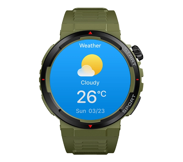 Informacje pogodowe w smartwatchu to przydatna funkcja! Dzięki aktualnym prognozom pogody na wyświetlaczu bądź gotów na każdą, nawet najbardziej kapryśną aurę. Planuj swój dzień z wyprzedzeniem, unikaj nieprzyjemnych niespodzianek i sprawdzaj, jak się ubrać. Niezależnie od tego, czy zbliża się deszcz, śnieg, czy upał, nic cię nie zaskoczy!