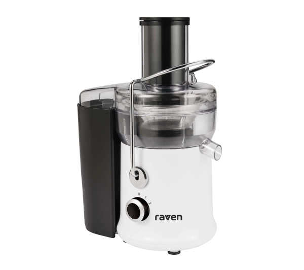 Sokowirówka Raven EFN011 ✓ Szeroki otwór wlotowy wynoszący 60 mm ✓ Sitko ze stali szlachetnej z precyzyjną mikrosiatką ✓ Wyjmowany zbiornik na miąższ o dużej pojemności 1,4 litra <a>Korzyści dla Ciebie</a> <a>Co otrzymujesz</a> <a>Warto wiedzieć</a> Korzyści dla Ciebie Odpowiednia prędkość dla każdego owocu Regulacja mechaniczno-skokowa w sokowirówce Raven ESO004X pozwala dostosować prędkość obrotów do twardości owoców i warzyw. Urządzenie ma dwa poziomy prędkości. Wolniejszy sprawdza się do delikatnych owoców, takich jak truskawki, maliny, kiwi czy brzoskwinie. Szybszy zapewnia optymalne rezultaty przy wyciskaniu soku z marchwi, buraków czy gruszek. Szeroki otwór wsadowy 60-milimetrowy otwór wsadowy pozwala na wrzucanie większych kawałków owoców i warzyw, ograniczając konieczność krojenia. Wytrzymałe sitko ze stali nierdzewnej z precyzyjną mikrosiatką skutecznie rozdrabnia cząstki, ułatwiając codzienne przygotowanie świeżych napojów. Minimum wysiłku, maksimum soku Sokowirówka Raven ESO004X ma pojemnik na odpady zdolny pomieścić aż 1,4 litra oraz dopasowany do urządzenia pojemnik na sok. Za jednym razem otrzymasz dużą ilość pysznego napoju pełnego witamin! Wygoda użytkowania Zaletą urządzenia jest intuicyjna obsługa, a także rozwiązania dedykowane bezpieczeństwu. To przede wszystkim dźwignia zabezpieczająca, a także ochrona przed przegrzaniem – maksymalny czas ciągłej pracy to 3 minuty. Co otrzymujesz W zestawie: ✓ Sokowirówka ✓ Pojemnik na miąższ ✓ Pojemnik na sok ✓ Popychacz ✓ Instrukcja obsługi wraz z kartą gwarancyjną Warto wiedzieć Pulpa na kilka sposobów <p>Resztki po przygotowaniu ulubionego soku przez wielu wydają się nic nie warte – nie wyglądają zbyt apetycznie. Tak naprawdę jest to jednak źródło cennego dla zdrowia błonnika, które możesz wykorzystać na wiele sposobów! Użyj powstałej pulpy jako dodatku do ciast, zagęszczacza do zupy-krem. bazy do wegańskich burgerów, sosów do makaronu, pasty kanapkowej bądź pesto. </p>