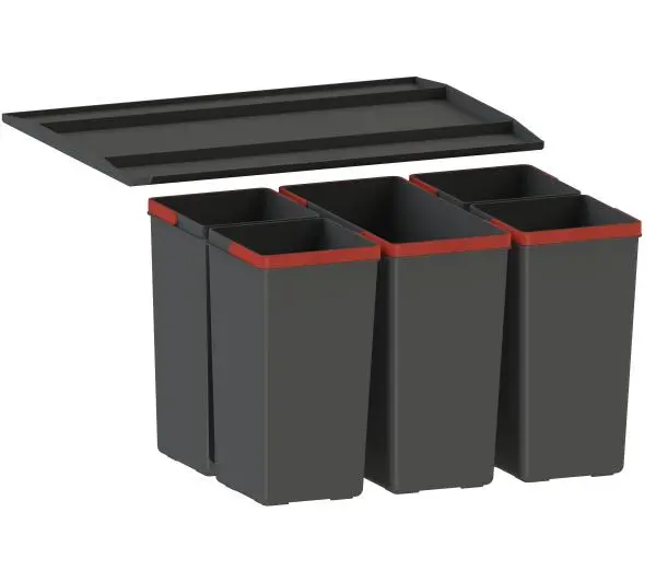 Wyposażenie: 1 pojemnik 14,5 l, 4 pojemniki 7,5 l, półka