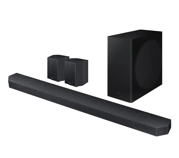 Your browser does not support HTML5 video. <p>Bezprzewodowe Dolby Atmos</p><p>Pierwszy raz na świecie bezprzewodowe Dolby Atmos</p><p>Wielokanałowy Dźwięk Przestrzenny 9.1.4</p><p>Zachwyć się przestrzennym brzmieniem</p><p>Q-Symphony</p><p>Harmonijne współbrzmienie soundbara i telewizora</p><p>Dźwięk Dopasowany do Przestrzeni+ </p><p>Dźwięk dostosowujący się do otoczenia</p><p>Bezprzewodowe Tylne Głośniki w Zestawie</p><p>Przestrzeń wypełniona dźwiękiem</p><p>Kinowa jakość dźwięku</p> <p>Wielokanałowy Dźwięk Przestrzenny 9.1.4</p><p>Przestrzenne brzmienie, które zachwyca z każdej strony</p><p>Usiądź wygodnie w swoim salonie i doświadcz przestrzeni wypełnionej doskonałym dźwiękiem. Dzięki 9 równomiernie rozprowadzającym dźwięk kanałom: 1 niskotonowemu i 4 skierowanym w górę, dźwięk będzie Cię otaczał z każdej strony, nadając Twoim przeżyciom niezwykłą intensywność i realizm.</p><p>Bezprzewodowe Dolby Atmos</p><p>Odkryj pierwsze na świecie bezprzewodowe Dolby Atmos</p><p>Czas na bezprzewodowe połączenie soundbara z telewizorem i doświadczenie niesamowitego brzmienia kinowego dzięki technologii Dolby Atmos. Teraz każdy pojedynczy dźwięk będzie poruszał się nad Tobą i wokół Ciebie, tak jakbyś był w samym środku akcji. Odkryj wciągające brzmienie, bez uciążliwych kabli.</p><p>Bezprzewodowa technologia Dolby Atmos wymaga połączenia za pomocą Wi-Fi. Funkcja kompatybilna wyłącznie z wybranymi telewizorami Samsung z 2022 i 2023 roku. Informacja o kompatybilności dostępna w specyfikacji telewizorów na stronie samsung.pl. Wymagane źródło dźwięku w formacie Dolby Atmos.</p> Your browser does not support HTML5 video. <p>Bezprzewodowe Tylne Głośniki w Zestawie</p><p>Dźwięk rozbrzmiewający w przestrzeni</p><p>Głośniki tylne w zestawie bezprzewodowym sprawiają, że dźwięk rozprzestrzenia się wokół Ciebie i unosi się nad Tobą, odbijając się od ścian i sufitu. Wyobraź sobie zapierającą dech w piersiach jakość dźwięku kinowego, która teraz będzie towarzyszyć Ci w Twoim własnym domu. Dodatkowo, dzięki nowej funkcji, możesz umieścić głośniki zarówno z przodu, jak i z tyłu, aby w każdym miejscu cieszyć się niezmienną jakością dźwięku.</p><p>Bezprzewodowe Tylne Głośniki marki Samsung dołączone do zestawu.</p> <p>Dźwięk Dopasowany do Przestrzeni+ </p><p>Dźwięk idealnie wypełniający przestrzeń</p><p>Niezwykłe brzmienie w każdym pomieszczeniu! Dzięki funkcji Dźwięku Dopasowanego do Przestrzeni, soundbar automatycznie analizuje swoje otoczenie i dostosowuje zasięg oraz ton dźwięku, aby idealnie dopasować się do miejsca, w którym jest umieszczony.</p><p>Dźwięk Dopasowany do Przestrzeni jest kompatybilny z telewizorem Samsung QLED (model Q70 i wyższe). Informacje o pełnej liście kompatybilnych modeli są dostępne na stronie samsung.pl.</p><p>Funkcja Adaptacji Dźwięku</p><p>Dźwięk dostosowany do treści</p><p>Odkryj doskonałe dialogi w każdej scenie, dzięki zaawansowanej analizie sygnału dźwiękowego. Dzięki funkcji Adaptacji Dźwięku, nawet przy niskiej głośności, dźwięk będzie niezwykle czysty, więc nie musisz przerywać akcji na chwilę. Teraz możesz cieszyć się zoptymalizowanym dźwiękiem w serialach, sporcie i wiadomościach, dzięki automatycznej analizie ścieżek audio oglądanych treści.</p><p>Aktywny Wzmacniacz Głosu (AVA)</p><p>Wyraźne dialogi bez zwiększania głośności</p><p>Gdy wokół pojawia się uciążliwy hałas, nie musisz już zwiększać głośności, aby zrozumieć dialogi. Dzięki Aktywnemu Wzmacniaczowi Głosu, masz pewność, że nic Ci nie umknie. Teraz słowa będą jasne i wyraźne, niezależnie od otoczenia.</p><p>Synergia z telewizorem</p> <p>Bezprzewodowe Połączenie z Telewizorem</p><p>Pełna synchronizacja z telewizorem</p><p>Bezproblemowe połączenie soundbara z telewizorem za pomocą technologii Wi-Fi lub Bluetooth® pozwoli Ci cieszyć się perfekcyjną synchronizacją dźwięku i obrazu.</p><p>Dostępne w wybranych telewizorach Samsung. Więcej informacji znajdziesz na stronie samsung.com. Kabel zasilający w zestawie.</p><p>Q-Symphony</p><p>Harmonijne brzmienie soundbara i telewizora</p><p>Ciesz się harmonijnym połączeniem dwóch urządzeń. Funkcja Q-Symphony Samsung to prawdziwa innowacja, która umożliwia jednoczesną pracę głośników telewizora i soundbara, tworząc niezrównaną synergiczną moc dźwięku. Jeszcze lepsze Q-Symphony dostarcza optymalny dźwięk z wszystkich kanałów, a sztuczna inteligencja remasteruje dźwięki z oryginalnego źródła audio. Wszystko to dla jeszcze bardziej intensywnych i poruszających doznań!</p><p>Funkcja Q-Symphony jest kompatybilna z wybranymi telewizorami Samsung. Informacje o pełnej liście kompatybilnych modeli są dostępne na stronie samsung.pl.</p> Your browser does not support HTML5 video. <p>HDMI eARC</p><p>Bezbłędna jakość dźwięku</p><p>Zanurz się w pełni w swoich ulubionych grach, łącząc konsolę z telewizorem lub telewizor z soundbarem. Dzięki obsłudze HDR 10+ będziesz cieszyć się żywymi obrazami o wysokiej rozdzielczości, a technologia HDMI eARC zapewni Ci realistyczny dźwięk, który odtworzy nawet najmniejsze szczegóły.</p><p>Tryb Wideo HDR 10+</p><p>Dźwięk idealnie dopasowany do obrazu</p><p>Wykorzystaj możliwości swojego soundbara i podłącz dowolne źródło treści wideo HDR10+ bezpośrednio do swojego telewizora Samsung.</p><p>Urządzenie źródłowe, telewizor i soundbar muszą być połączone kablem HDMI.</p><p>Jeden Pilot</p><p>Wygodne zarządzanie urządzeniami</p><p>Nie potrzebujesz już wielu pilotów! Teraz możesz kontrolować wszystkie funkcje soundbara, regulować głośność, włączać i wyłączać urządzenie oraz zarządzać efektami dźwiękowymi za pomocą Jednego Pilota - tego samego, którego używasz do obsługi swojego telewizora Samsung.</p><p>Kompatybilny z wybranymi 