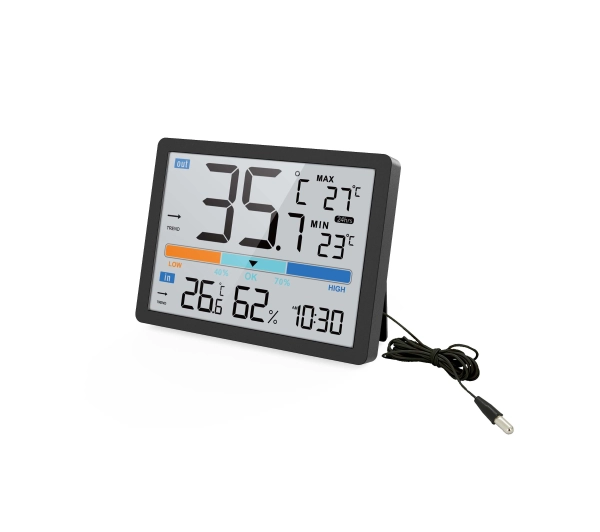 Funkcje dodatkowe: pomiar temperatury, pomiar wilgotności, wskaźnik komfortu, wyświetlacz LCD