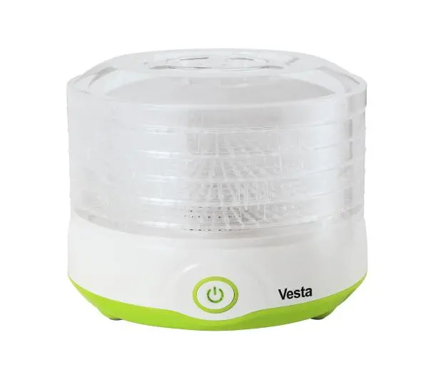 Suszarka spożywcza EFD03✓ Suszenie żywności na 5 poziomach✓ Regulowana wysokość sit od 13 do 19 cm✓ Szybkie i dokładne suszenie dzięki mocy 240 W<a>Korzyści dla Ciebie</a><a>Co otrzymujesz</a><a>Warto wiedzieć</a>Korzyści dla Ciebie Do różnychproduktów Suszarka spożywcza Vesta EFD03 oferuje 2 wysokości sit – 1,5 lub 3 cm. W związku z tym możesz dostosować ją do suszenia produktów o różnych wymiarach i kształtach – pokrojonych na grubszą kostkę czy cieniutkie plasterki. Jest to zatem urządzenie o szerokich możliwościach zastosowania – sprawdza się do owoców, warzyw, grzybów, ziół a nawet mięsa! Postawna zdrowie Podczas wieczornych seansów filmowych lubisz mieć pod ręką chrupiące przekąski? Zapomnij o niezdrowych, kalorycznych chipsach ze sklepu – zrób własne, sięgając tylko po sprawdzone składniki! W urządzeniu Vesta EFD03 możesz przygotować domowe przekąski – suszone plastry jabłek, bananów, truskawek czy buraków okażą się smaczne, a jednocześnie nieszkodliwe dla zdrowia i wymarzonej figury! Intuicyjnaobsługa Korzystanie z urządzenia Vesta EFD03 jest bardzo proste. Wystarczy ułożyć pokrojone na kawałki produkty na sitach i umieścić je w suszarce. Urządzenie uruchamia się jednym przyciskiem – w trakcie pracy należy kontrolować stopień wysuszenia jedzenia. Po zakończeniu suszenia wszystkie sita możesz wyjąć i oczyścić, by od razu przygotować je do ponownego użycia. Transparentnakonstrukcja Suszarka do żywności została skonstruowana tak, by zapewnić Ci maksymalny komfort użytkowy. Wszystkie sita i pokrywa urządzenia Vesta EFD03 wykonane zostały z przezroczystego tworzywa, co pozwala na bieżące obserwowanie stopnia wysuszenia produktów. Nie musisz więc ciągle otwierać suszarki, by sprawdzić, czy żywność wymaga dalszego dosuszania!Co otrzymujesz W zestawie:✓ Suszarka✓ Instrukcja✓ Karta gwarancyjnaWarto wiedzieć Jak przygotować owoce do suszenia? <p>Dzięki regulowanej wysokości sit możesz suszyć produkty pokrojone w różne kształty. Aby jednak uzyskać pożądane efekty, pamiętaj o kilku zasadach. Plastry powinny mieć jednolitą grubość – wówczas masz pewność, że będą suszone równomiernie. Jedzenie pokrojone w kostkę nie może być natomiast zbyt małe – podczas suszenia straci ono swoją objętość i kawałki mogą spadać na niższe poziomy. Z kolei miękkie owoce najlepiej jest podzielić na połówki lub ćwiartki.</p>