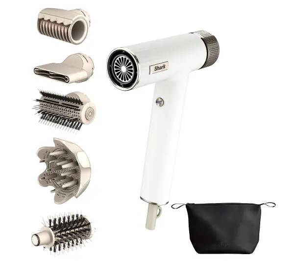 <h2>Shark 5w1 HD352EU</h2>Shark 5w1 HD352EU to więcej niż sposób na wysuszenie włosów po umyciu. Ta innowacyjna suszarka pozwala też bezpiecznie modelować pasma, nadawać im blask i eksperymentować z 5 nasadkami do wyboru.Ekspresowe suszenie i modelowanie bez żadnego wysiłku - efekty niczym z profesjonalnego salonu stylizacji fryzur5 różnych nasadek do różnego rodzaju fryzur – możliwość eksperymentowania i tworzenia zjawiskowych efektówInteligentne ustawienia Speed Style IQ – automatyczne dostosowanie parametrów do wybranej nasadkiSporo możliwości dzięki aż 3 poziomom temperatury i 3 prędkościom nawiewu do wyboruFunkcja jonizacji dla gładkich i lśniących włosów bez ryzyka uszkodzenia ich delikatnej strukturyOchrona przed uszkodzeniami termicznymi spowodowanymi działaniem wysokiej temperaturyFunkcja Cool Shot – możliwość domknięcia łusek włosów, wygładzenia ich i nadania im nieziemskiego blaskuLekka konstrukcja, nowoczesny design i neoprenowy woreczek do przechowywania w komplecie<h2>Poznaj suszarkę do włosów Shark 5W1 HD352EU</h2> Do każdego rodzaju włosówSuszarka do włosów Shark 5w1 HD352EU pozwala błyskawicznie wysuszyć włosy bez względu na ich długość i typ. Dzięki temu nowoczesnemu urządzeniu w zaledwie kilka minut stworzysz wymarzoną, perfekcyjnie ułożoną fryzurę o wysokim połysku i niezwykłej miękkości. Wygodne w użyciu i idealne do codziennej stylizacji, powstało po to, by podkreślanie swojego stylu było jeszcze prostsze niż kiedykolwiek. Aż 5 różnych nasadekSuszarka wyposażona została w 5 nasadek do stylizowania prostych i kręconych włosów. W komplecie z Shark 5w1 HD352EU znajdziesz szczotkę RapidGloss Finisher wygładzającą puszące się włosy, szczotkę QuickSmooth, idealną do tworzenia prostych fryzur o pełnej objętości oraz dyfuzor DefrizzFast do tworzenia sprężystych loków. Do tego otrzymujesz koncentrator zapewniający szybkie suszenie i wygładzenie włosów oraz szczotkę Express Touch do błyskawicznego wygładzania grzywki, warstw i końcówek. Funkcja Speed Style IQDzięki funkcji Speed Style IQ wystarczy podłączyć wybraną nasadkę do modelowania, a suszarka do włosów Shark 5w1 HD352EU automatycznie dopasuje ustawienia ciepła i przepływu powietrza. Dzięki temu stylizacja staje się łatwiejsza niż kiedykolwiek wcześniej! Korzystaj ze wszystkich możliwości urządzenia nie tylko w dniu mycia włosów, ale i wtedy, gdy chcesz podkręcić grzywkę, zdefiniować fale albo przywrócić swoim pasmom wymarzoną objętość na chwilę przed wyjściem z domu. Trzy różne ustawienia Masz też możliwość ręcznego przełączania między trzema ustawieniami i trzema prędkościami nawiewu po to, by dostosować stylizację do swoich potrzeb lub eksperymentować z różnymi efektami. Shark 5w1 HD352EU to urządzenie dla wymagających i dla tych, którzy dobrze wiedzą, czego chcą! Funkcja jonizacji Suszarka Shark 5w1 HD352EU posiada funkcję jonizacji, która eliminuje elektryzowanie się włosów. W efekcie jej działania pasma na etapie suszenia stają się niezwykle gładkie i lśniące. Zamknięte łuski to zdrowszy wygląd i łatwiejsza stylizacja bez puszenia się. Technologia ta chroni włosy przed uszkodzeniami, zapewniając ich lepszą kondycję. Automatyczna regulacja temperaturyShark 5w1 HD352EU precyzyjnie mierzy i reguluje temperaturę aż 1000 razy na sekundę! Dzięki temu gwarantuje optymalne warunki suszenia i stylizacji włosów bez ryzyka ich zniszczenia – nawet jeśli codziennie korzystasz z urządzenia. Nigdy nie przekracza ono bezpiecznego poziomu 110°C. Strumień zimnego powietrzaUtrwal stylizację i zamknij łuskę włosa za pomocą strumienia zimnego powietrza. Funkcja Cool Shot, w jaką wyposażona została Shark 5w1 HD352EU, opiera się na technologii, z której możesz skorzystać na zakończenie suszenia pasm bądź zawsze wtedy, kiedy chcesz przywrócić im lśniący wygląd. Zapomnij raz na zawsze o puszących się, łamliwych i matowych włosach – przywitaj swój nowy look zwieńczony błyszczącą fryzurą niczym prosto z salonu. Modny, ergonomiczny design Suszarka do włosów Shark 5w1 HD352EU zaprojektowana została z myślą o komforcie użytkowania nawet podczas dłuższej, codziennej stylizacji. Jej zalety to przede wszystkim ergonomiczny design oraz lekka konstrukcja – urządzenie waży około 750 g. Doskonale wyważony, ergonomiczny uchwyt minimalizuje zmęczenie rąk. Dodatkowym plusem jest długi, 2,5-metrowy przewód zasilający – zapewnia wygodne korzystanie z suszarki w dowolnym miejscu. Neoprenowa torba do przechowywaniaW zestawie z Shark 5w1 HD352EU znajdziesz też stylową, neoprenową torbę, w której możesz bezpiecznie przechowywać swoją suszarkę, a także wszystkie akcesoria dołączone do kompletu. Urządzenie będzie chronione przed wilgocią, kurzem i uszkodzeniami mechanicznymi, a Ty będziesz mogła zabrać je ze sobą wszędzie, nawet w podróż służbową czy na siłownię. <h2>Zawartość opakowania Shark 5w1 HD352EU</h2>W opakowaniu Suszarka Dyfuzor Szczotka RapidGloss Finisher Szczotka QuickSmooth Szczotka Express Touch Koncentrator Materiałowa saszetka do przechowywania Instrukcja obsługiShark – marka godna zaufaniaSzerokie portfolio produktówUrządzenia do sprzątania, oczyszczania powietrza, pielęgnacji urodyWysoka pozycjaMarka globalnego giganta w branży designu użytkowego SharkNinjaOd lat na rynkuHistoria marki sięga 1994 roku