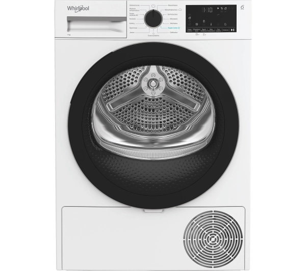 1 8003437064883 C WSD 74M WBS PL 12.08.2025 suszarki whirlpool Suszarka slim z pompą ciepłaC WSD 74M WBS PLSuszenie z myślą o Twoich ubraniach Klasa energetyczna: C Załadunek: 7kg Suszarka slim - 47cmSlimZmniejszone wymiary zapewniają oszczędność miejsca bez utraty pojemności, oferując pełną funkcjonalność suszenia w kompaktowej formie.Pompa ciepłaPompa ciepła umożliwia delikatne suszenie w niższej temperaturze, skutecznie chroniąc tkaniny przed skurczeniem i zużyciem, jednocześnie znacząco ograniczając zużycie energii w porównaniu do tradycyjnych rozwiązań grzewczych.Program Super szybkie 30'Program Super szybkie 30' pozwala wysuszyć ubrania w zaledwie 30 minut – idealne rozwiązanie, gdy potrzebujesz szybko odświeżyć odzież i zaoszczędzić czas.Podwójny filtr pyłkowyPodwójny filtr pyłkowy skutecznie wyłapuje pyłki, włókna, sierść i nitki, oczyszczając powietrze podczas suszenia. Łatwy dostęp do filtrów w drzwiach ułatwia ich szybkie czyszczenie po każdym cyklu.Intuicyjnatechnologia 6. ZmysłTechnologia 6. Zmysł z funkcją Precision Dry automatycznie zarządza procesem suszenia, analizując poziom wilgotności, temperaturę oraz ilość załadunku. Inteligentne czujniki monitorują warunki wewnątrz bębna, dostosowując czas i intensywność suszenia w czasie rzeczywistym – by zapobiec przesuszeniu i chronić tkaniny. Dzięki temu suszenie staje się w pełni zautomatyzowane. Suszarka sama dobiera idealne parametry cyklu, zapewniając oszczędność energii i dłuższą żywotność ubrań. To inteligentne, precyzyjne suszenie i perfekcyjne rezultaty przy każdym załadunku.Poznaj kluczowe funkcje suszarki Whirlpool C WSD 74M WBS PL SlimPełna wygoda w smukłej formieSuszarka typu slim to węższe urządzenie, które pozwala oszczędzić miejsce bez rezygnacji z pojemności i efektywności suszenia. Kompaktowe wymiary sprawiają, że idealnie sprawdzi się w mniejszych pomieszczeniach.Oszczędność miejsca – zmniejszone wymiary zewnętrzne zajmują nawet do 10% mniej przestrzeni niż standardowe modele. Pełna pojemność – kompaktowa budowa nie wpływa na wielkość ładowności. Maksymalne wykorzystanie przestrzeni – suszarkę można ustawić na pralce typu slim, by jeszcze lepiej zagospodarować dostępne miejsce. Pompa ciepłaOszczędność i delikatnośćPompa ciepła to technologia, która zmienia sposób suszenia – dbając zarówno o ubrania, jak i domowy budżet. Dzięki pracy w niższej temperaturze tkaniny są skutecznie chronione, a proces suszenia staje się bardziej energooszczędny.Delikatne suszenie – stabilna, łagodna temperatura 40–60°C chroni ubrania przed skurczeniem i uszkodzeniem. Większa troska o odzież – nawet najcieńsze materiały zachowują swój kształt i miękkość. Oszczędność energii – nowoczesne rozwiązanie, które ogranicza zużycie prądu bez rezygnacji z efektywności. Program Super Szybkie 30'Błyskawiczne suszenieProgram Super Szybki 30’ umożliwia wysuszenie ubrań w zaledwie 30 minut, zapewniając wygodę i oszczędność czasu wtedy, gdy najbardziej tego potrzebujesz.Szybkie rezultaty – krótki cykl idealny do błyskawicznego odświeżenia odzieży. Skuteczność w pół godziny – ubrania są gotowe do założenia lub złożenia bez kompromisów. Wygoda na co dzień – idealne rozwiązanie w sytuacjach, gdy liczy się każda minuta.Podwójny filtr pyłkowyMniej zanieczyszczeń, więcej komfortuPodwójny filtr pyłkowy dba o czystość powietrza i kondycję Twoich ubrań, wychwytując zmechacone włókna, sierść i inne drobiny podczas każdego cyklu suszenia. Dzięki wygodnemu umieszczeniu w drzwiach, czyszczenie filtrów jest szybkie i bezproblemowe.Czystsze powietrze – filtr zatrzymuje pyłki, sierść, nitki i inne drobiny, poprawiając jakość suszenia. Skuteczna ochrona odzieży – mniejsze zanieczyszczenia to mniej osadów na ubraniach. Wygodne czyszczenie – filtry łatwo wyjąć i wyczyścić po każdym cyklu, bez zbędnego wysiłku. Otwórz Zamknij SlimWęższe wymiary i kompaktowy design pozwalają na oszczędność miejsca, zachowując jednocześnie pełną pojemność i efektywność suszenia. Załadunek: 7kgWygodnie wysusz wszystkie ubrania na co dzień – szybko, skutecznie i w jednym cyklu. Design - kolor białySuszarka wyróżnia się wyjątkowym designem, który wkomponuje się w każde wnętrze. Jej elegancki wygląd łączy nowoczesność z funkcjonalnością, tworząc idealne dopełnienie domowej przestrzeni. Podwójny filtr pyłkowySkutecznie oczyszcza powietrze z pyłków, włókien i sierści, zapewniając czyste pranie. Filtry umieszczone są w drzwiach, co ułatwia ich szybkie i wygodne czyszczenie po każdym cyklu. Przekładane drzwiDrzwi można łatwo zamontować po dowolnej stronie, dzięki czemu dopasujesz ustawienie urządzenia do swojego wnętrza. Podłączenie do odpływuSuszarka może być podłączona bezpośrednio do odpływu, w zestawie znajduje się wąż odprowadzający skropliny. Oświetlenie bębnaDzięki wbudowanemu oświetleniu bębna łatwo znajdziesz i wyjmiesz nawet najmniejsze elementy prania.Programy suszarki Whirlpool C WSD 74M WBS PLBawełnianeDo skutecznego suszenia ubrań i tekstyliów wykonanych z bawełny.Bawełniane EcoEnergooszczędny program do suszenia bawełny przy mniejszym zużyciu energii.SyntetycznePrzeznaczony do suszenia odzieży z włókien syntetycznych, takich jak poliester.MieszaneUmożliwia suszenie różnych typów tkanin w jednym cyklu.WełnianeDelikatne suszenie tkanin wełnianych, które zachowuje ich miękkość i strukturę.Super cicheWyjątkowo cichy program, idealny do suszenia w nocy bez zakłócania spokoju.DelikatneBezpieczne suszenie tkanin wymagających szczególnej ochrony.Czas suszeniaMożliwość ustawienia indywidualnego czasu suszenia dla pełnej kontroli nad procesem.JeansProgram dostosowany do suszenia grubych tkanin, takich jak denim.SportoweDelikatne suszenie odzi