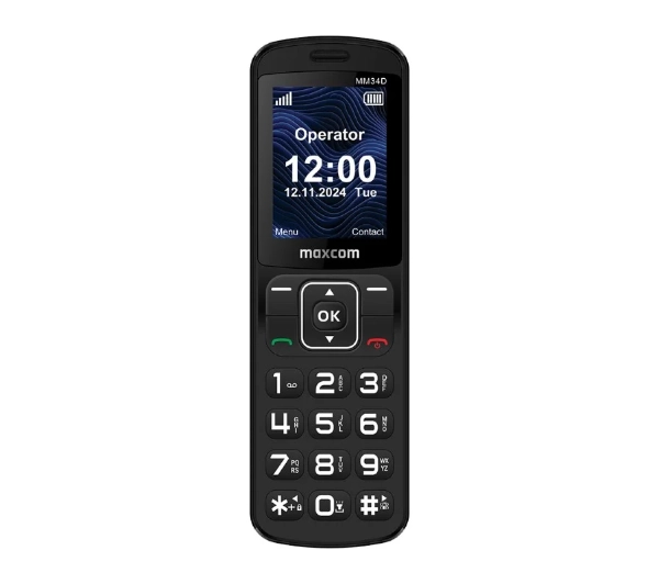 <h2>Maxcom MM34D SE 4G</h2><p>to funkcjonalny telefon typu desk, łączący klasyczny design z technologią 4G. Świetnie sprawdzi się w domu lub biurze – zwłaszcza u osób starszych. Łączy prostą obsługę z praktycznym zestawem funkcji jak radio, latarka, kalendarz, długi czas działania oraz możliwość wygodnego ładowania na biurku.</p> <h3>Niezawodna bateria i stacja ładująca</h3><p>Akumulator 1000 mAh oferuje solidne działanie, a w zestawie otrzymujesz wygodną ładowarkę biurkową – ergonomiczne ładowanie bez szukania portu USB-C (Universal Serial Bus typ C), aby telefon był zawsze gotowy do użycia.</p><h4>Obsługa kart Nano SIM (Subscriber Identity Module)</h4><p>Działaj bez linii stacjonarnej</p><h4>Wibracje</h4><p>Nie przeoczysz połączenia</p><h4>Duże klawisze i czcionka</h4><p>Maksymalna czytelność i komfort obsługi</p><h4>Głośny dzwonek</h4><p>Usłyszysz go nawet w hałaśliwym otoczeniu</p><h4>Slot na kartę microSD (do 32 GB)</h4><p>Więcej miejsca na Twoje wspomnienia</p><h4>VoLTE (Voice over LTE)</h4><p>Wyraźne rozmowy w jakości HD (High Definition)</p><h4>Wygodna ładowarka biurkowa</h4><p>Zawsze gotowy do działania</p><h4>Tryb głośnomówiący</h4><p>Wygodne rozmowy bez użycia rąk</p><h4>Latarka, budzik, radio FM (Frequency Modulation) i kalkulator</h4><p>Małe rzeczy, które robią różnicę</p><h4>USB-C i wyjście słuchawkowe Jack 3.5 mm</h4><p>Nowoczesne i uniwersalne złącza</p><p>GniazdoUSB-C</p><p>RadioFM</p><p>Pojemnabateria</p><h3>Smukła, ergonomiczna obudowa</h3><p>MM34D SE wyróżnia się eleganckim, wyprofilowanym kształtem – smukła obudowa (168,5 × 52,4 × 12,9 mm, 96 g) ułatwia pewne trzymanie i dodaje stylu do każdego wnętrza.</p><h3>Duży, czytelny ekran i wyraźna czcionka</h3><p>Kolorowy wyświetlacz 2,4″ gwarantuje komfortowe czytanie i przeglądanie komunikatów – idealny dla osób z gorszym wzrokiem.</p><h3>Połączenia 4G</h3><p>Obsługa sieci 4G/LTE (Long Term Evolution) wraz z funkcją głośnomówiącą umożliwia klarowne rozmowy i wygodne prowadzenie rozmów bez konieczności trzymania telefonu przy uchu.</p><h3>Latarka, radio FM i dodatkowe funkcje</h3><p>Telefon wyposażono w latarkę LED (Light Emitting Diode) i radio FM – przydatne rozwiązania do użytku domowego lub biurowego. Urządzenie posiada również kalendarz, budzik, kalkulator oraz wibracje – wszystko, co ułatwia codzienne życie.</p><p>KartaSIM</p><p>Klawiszenumeryczne</p><p>Podstawkaładująca</p><h3>Pamięć i obsługa dodatkowych kart</h3><p>Książka telefoniczna na 300 pozycji i obsługa karty microSD do 32 GB pozwalają przechowywać kontakty, muzykę lub pliki audio bez ograniczeń.</p><h3>Komfortowe połączenia i kompatybilność słuchawkowa</h3><p>Telefon posiada gniazdo 3,5 mm jack, umożliwiające wykorzystanie słuchawek przewodowych, a także funkcję głośnomówiącą, co sprawdza się podczas wielozadaniowości.</p><h3>Dla kogo jest ten telefon?</h3><ul> <li>Dla seniorów – duże klawisze i czytelny ekran</li> <li>Dla biur/kas – prosto i bezpiecznie</li> <li>Dla osób szukających prostoty – bez SOS (Save Our Souls), ale z niezbędnymi funkcjami</li> <li>Do domu – na biurko, blat, obok łóżka</li></ul>