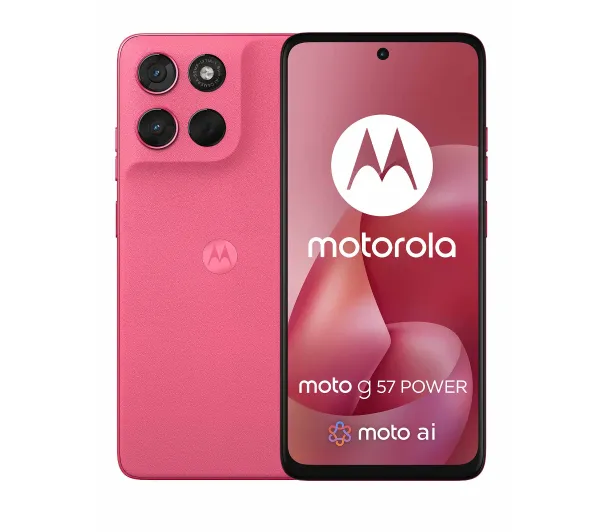 <h3>Pojemność baterii 7000 mAh wystarczająca na wiele dni</h3>Możesz jeszcze więcej dzięki potężnej baterii krzemowo‑węglowej zapewniającej do 60 godzin użytkowania.¹ Doładuj baterię w mgnieniu oka. Ładowanie TurboPower™ 30 zapewnia godziny działania w ciągu kilku minut.5 <h3>Uchwyć doskonałość bez względu na oświetlenie</h3>Matryca 50 Mpx Sony LYTIA™ 6003 z technologią Quad Pixel i moto ai (Artificial Intelligence) zapewnia ostrzejsze, bardziej żywe zdjęcia w dzień i w nocy. <h3>Zmieść więcej w kadrze, rób szersze ujęcia</h3>Specjalny obiektyw ultraszerokokątny zwiększa kąt widzenia, więc możesz uchwycić więcej w każdym wyraźnym i szczegółowym ujęciu. <h3>Olśniewające selfie</h3>Przedni aparat 8 Mpx zapewnia zdjęcia gotowe do publikacji w mediach społecznościowych dzięki retuszowaniu twarzy i ulepszeniom moto ai ‑ doskonałość bez wysiłku. <h3>Design najwyższej klasy. Potwierdzona wytrzymałość.</h3>Moto g57 power łączy siłę i wyrafinowanie dzięki wytrzymałości klasy wojskowej MIL‑STD‑810H (Military Standard 810H),8 trzykrotnie większej odporności szkła Gorilla® Glass 7i i odporności na wilgoć IP64 (Ingress Protection).2 <h3>Szybkość, która nigdy nie zwalnia</h3>Procesor Snapdragon® 6s Gen 4 zapewnia błyskawiczną wydajność i płynniejszą wielozadaniowość, wspieraną przez rozszerzenie RAM (Random Access Memory) do nawet 24 GB.4 <h3>Jaśniejszy, płynniejszy, bardziej wciągający</h3>Wyświetlacz FHD+ (Full High Definition) 6,72" z częstotliwością odświeżania 120 Hz6 i jasnością do 1050 nitów, oraz dwa głośniki stereo z technologią Dolby Atmos®, zapewniają żywe obrazy i bogaty, wielowymiarowy dźwięk. <h3>Inteligentniejsze i bezpieczniejsze środowisko</h3>System Android 16 z Gemini, funkcją Zaznacz, aby wyszukać, aplikacją Smart Connect7 i Moto Secure łączy inteligencję i prywatność w jedno płynne środowisko. Niektóre funkcje, funkcjonalności i specyfikacje produktów są zależne od sieci i podlegają dodatkowym warunkom i opłatom. Wszystkie informacje mogą ulec zmianie bez powiadomienia. MOTOROLA, logo Stylizowane M, MOTO i rodzina znaków MOTO są znakami towarowymi firmy Motorola Trademark Holdings, LLC. Wszelkie pozostałe znaki towarowe należą do odpowiednich właścicieli. ©2026 Motorola Mobility LLC. Wszelkie prawa zastrzeżone. PANTONE Chip Design ©Pantone LLC, 2026. Wszelkie prawa zastrzeżone. To jest autoryzowany produkt licencjonowany przez firmę Pantone i wyprodukowany przez firmę Motorola. Wyprodukowano na licencji firmy Dolby Laboratories. Dolby, Dolby Atmos i symbol podwójnego D są zarejestrowanymi znakami towarowymi firmy Dolby Laboratories Licensing Corporation. Corning i Gorilla są zarejestrowanymi znakami towarowymi spółki Corning Incorporated. Qualcomm i Snapdragon są znakami towarowymi spółki Qualcomm Incorporated, zarejestrowanymi w Stanach Zjednoczonych i innych krajach. LYTIA jest zarejestrowanym znakiem towarowym lub znakiem towarowym korporacji Sony Group Corporation. 1 [Pojemność baterii 7000 mAh] Typowa pojemność to 7000 mAh. Wartość typowa to szacunkowa średnia pojemność partii baterii, ustalona podczas testów wewnętrznych, reprezentująca oczekiwaną wydajność w normalnych warunkach. Pojemność znamionowa to 6790 mAh. Pojemność znamionowa to minimalna gwarantowana pojemność baterii w kontrolowanych warunkach. 2 [Odporność na wilgoć IP64] Wodoszczelność i pyłoszczelność testowano zgodnie z normami IP64 w kontrolowanych warunkach laboratoryjnych. Zaprojektowano w sposób zapewniający ochronę przed umiarkowanym narażeniem na działanie wody słodkiej, takim jak przypadkowe rozlanie, rozpryski lub słaby deszcz. Produkt nie jest zabezpieczony na wypadek zanurzenia w wodzie ani narażenia na działanie wody pod ciśnieniem lub innych cieczy. Wytrzymałość zmniejsza się na skutek naturalnego zużycia. Zaprojektowano w sposób zapewniający ochronę przed wnikaniem obcych cząstek stałych o dowolnych rozmiarach. Nieodporny na zachlapania.3 [Quad Pixel 50 Mpx, ale rzeczywista rozdzielczość to 12,5 Mpx] Czujnik 50 Mpx łączy cztery piksele w jeden, zapewniając efektywną rozdzielczość zdjęć 12,5 Mpx. 4 [Technologia rozszerzenia RAM] Rozszerzenie pamięci RAM przy użyciu funkcji rozszerzenia RAM wymaga użycia pamięci wewnętrznej telefonu jako pamięci wirtualnej, co powoduje zmniejszenie jej pojemności. Dostępna pamięć użytkownika jest mniejsza podczas korzystania z tej funkcji. Sama funkcja jest domyślnie włączona do czasu jej celowego wyłączenia.5 [Ładowanie TurboPower™ 30] Maksymalne ładowanie 30 W; szybkie ładowanie działa tylko z ładowarką Motorola TurboPower™ 33 W lub nowszym modelem (sprzedawana oddzielnie na wszystkich rynkach europejskich); ładowarka Motorola TurboPower™ 33 lub nowsze ładowarki nie zwiększają maksymalnych możliwości ładowania. 6 [Częstotliwość odświeżania ekranu 120 Hz] W trybie inteligentnym i zrównoważonym minimalna częstotliwość odświeżania urządzenia wynosi 30 Hz, a maksymalna 120 Hz; rzeczywista częstotliwość odświeżania może być niższa i będzie się różnić w zależności od ograniczeń i wymagań aplikacji lub treści, ustawień trybu urządzenia i innych czynników.7 [Smart Connect: integracja z komputerem i tabletem] Aplikacja Smart Connect jest dostępna na wybranych smartfonach, tabletach oraz w systemach Windows 10 i Windows 11. Pełna lista zgodnych telefonów i oprogramowania jest dostępna na stronie często zadawanych pytań. Wymagane jest pobranie aplikacji na komputer. Aby komputer i urządzenie przenośne mogły się połączyć bezprzewodowo, muszą korzystać z tego samego punktu dostępu sieci Wi‑Fi lub muszą być połączone przewodem USB‑C (Universal Serial Bus).8 [Standard wojskowy 810H] Standard MIL‑STD‑810H ustanawia metodologię testowania produktów pod kątem obciążeń 