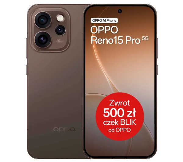 <h2>OPPO Reno15 Pro 5G</h2><p>Design Tańczącej Zorzy Polarnej</p><p>Twój najlepszy kompan do portretów</p><p>ColorOS 16: płynny i inteligentny</p><p>Płynna rozgrywka w wysokim FPS (klatek na sekundę)</p><h2>AURORA VITALITYAESTHETIC DESIGN</h2><p>Design powstał z inspiracji światłem tańczącym na krańcu świata. Oddaje energię nowych początków moment, w którym siła spotyka się z marzeniami, a każdy błysk symbolizuje start nowej drogi w życiu.</p><h3>Design Zorzy Polarnej</h3><h4>Jeden obrót.Życie pełne barw.</h4><p>Przy każdym lekkim ruchu światło się zmienia, a powierzchnia delikatnie mieni się i „żyje”. Specjalna faktura OPPO Glow sprawia, że tył telefonu wygląda jak poruszająca się zorza polarna — pełna kolorów i blasku. To jak mały kawałek kosmosu, który trzymasz w dłoni.</p><h2>Dynamiczny design Stellar Ring</h2><h3>Gdzie każde ujęcie odnajduje swój blask</h3><p>Kwadratowa ramka wokół aparatu delikatnie mieni się, gdy pada na nią światło. W środku widać wiele drobnych, błyszczących punktów, które przypominają gwiazdy. Ten efekt nawiązuje do kosmosu i dodaje energii oraz emocji każdemu zrobionemu zdjęciu.</p><h2>Mały rozmiarem.Wielka wytrzymałość</h2><p>Kompaktowy, wygodny i stworzony do ruchu. Design naturalnie i bez wysiłku dopasowuje się do dłoni i kieszeni, a długotrwała bateria zapewnia energię od rana do nocy.</p><h3>Niebieski</h3><p>Niebieski kolor inspirowany jest zorzą polarną. Mieni się energią i pięknymi barwami, które delikatnie się poruszają. Przypomina, że każda wyjątkowa chwila zaczyna się od odwagi.</p><h3>Brązowy</h3><p>Kolor brązowy to kolor inspirowany spokojem zmierzchu. Łączy w sobie głębię i siłę, z delikatnym połyskiem nawiązującym do natury. To barwa, która kojarzy się ze spokojem, ponadczasowym stylem i stabilnością.</p><h3>Jednoczęściowe, rzeźbione szkło</h3><h4>Jedna całość.Nieskończona precyzja.</h4><p>Zrodzony z pojedynczej tafli szkła, jednoczęściowy design rzeźbionego szkła zachowuje doskonałą ciągłość. Każda krzywizna jest płynna, a każda linia celowa. To forma czystej elegancji i trwałej wytrzymałości, wyrzeźbiona z samego światła.</p><h3>Ultracienkie ramki ekranu</h3><h4>Widoczność bez granic</h4><p>Gdy granice znikają, piękno się rozszerza. Ultracienkie ramki zachowują idealną równowagę, tworząc ekran, który wydaje się nieskończony. Okno, w którym światło, kolor i wyobraźnia poruszają się jako jedność.</p><h2>Aluminiowa rama klasy lotniczej</h2><h3>Stworzona dla piękna.Zaprojektowana z myślą o trwałości.</h3><p>Precyzyjnie wykuta z aluminium klasy lotniczej rama lśni cichą pewnością siebie. Lekka, trwała i dopracowana w najdrobniejszym detalu. Design, który jest tak samo solidny, jak wygląda, stworzony, by przetrwać dłużej niż przeciętność.</p><h3>Odporność na wodę i kurz IP69¹</h3><h4>Niezłomna wytrzymałość.</h4><p>Zaprojektowany z myślą o niezwykłości. Konstrukcja z certyfikatem IP69 z łatwością opiera się kurzowi, zachlapaniom i pełnemu zanurzeniu w wodzie. Tam, gdzie inni zawodzą, on działa bez wahania. Niezrażony deszczem, olśniewający pod wodą, gotowy uchwycić każdą chwilę, jaką świat ma odwagę zaoferować.</p><h2>120-Hz inteligentny ekran adaptacyjny²</h2><h3>Czysty ruch. Doskonała klarowność.</h3><p>Doświadcz olśniewającej jakości 6,32-calowego³ wyświetlacza OLED (Organic Light-Emitting Diode) z adaptacyjnym odświeżaniem 120 Hz, klarownością HDR10+ (High Dynamic Range) oraz rozdzielczością FHD+ (ok. 2400 × 1080 pikseli). Inteligentne wykrywanie światła, tryb Splash Touch oraz Glove Touch zapewniają płynną i responsywną obsługę — zawsze i wszędzie.</p><p>93.35%</p><p>Stosunek ekranu do obudowy</p><p>1.07 miliarda</p><p>Kolorów</p><p>FHD+</p><p>Rozdzielczość ekranu</p><p>HDR10+</p><p>Certyfikowany</p><p>Splash Touch</p><p>Obsługa ekranu przy zachlapaniach</p><h2>Mistrz vlogów portretowych</h2><p>Dzięki profesjonalnej specyfikacji aparatu oraz inteligentnym, stylowym trybom fotografowania tworzenie wyróżniających się vlogów nigdy nie było prostsze. Nagrywaj, edytuj i udostępniaj bez przeszkód. Twój telefon to kompletne, jednoosobowe studio produkcyjne.</p><h2>Ultrawyraźny system aparatów</h2><p>1</p><p>200 MP</p><p>Ultrawyraźny aparat główny</p><p>2</p><p>50 MP</p><p>Aparat</p><p>ultraszerokokątny</p><p>3</p><p>50 MP</p><p>Teleobiektyw portretowy 3,5x</p><p>4</p><p>50 MP</p><p>Ultraszerokokątny aparat do selfie z polem widzenia 100°⁴</p><h3>4K HDR (High Dynamic Range) Ultra-Steady Video</h3><h4>Każdy kąt. Każdy klimat.</h4><p>Od zbliżeń po szerokie horyzonty. Wideo 4K HDR sprawia, że każda klatka jest żywa i pełna detali. Płynnie przełączaj się między obiektywami: głównym, ultraszerokokątnym, teleobiektywem lub przednim i rejestruj świat w olśniewających, kinowych barwach.</p><h3>Stabilne ujęcie.Na każdym kroku.</h3><p>Bez statywu. Bez problemu. Dzięki nowej generacji EIS (Electronic Image Stabilization) współpracującej z OIS (Optical Image Stabilization) oraz silnikiem z zamkniętą pętlą sterowania każde ujęcie pozostaje stabilne i kinowe, nawet gdy świat jest w ciągłym ruchu.⁵</p><h3>Przednie ultraszerokokątne wideo portretowe</h3><h4>Zabłyśnij na większej scenie</h4><p>Wejdź w szerszy kadr. Dzięki polu widzenia 100° ultraszerokokątny aparat do selfie 50 MP uchwyci więcej świata wokół Ciebie, otwierając nieograniczone możliwości kadrowania, opowiadania historii i kinowej płynności.</p><h3>Wideo z podwójnym widokiem</h3><h4>To, co widzisz.To, co czujesz.</h4><p>Przedni i tylny aparat nagrywają jednocześnie, pozwalając Ci pokazać obie strony każdej chwili. Od podróżniczych przygód po codzienne odkrycia. Uchwyć pełną historię: Ciebie i Twój świat, razem.</p><h3>Edycja wideo 2.0</h3><h4>Edycja wideo 2.0Edytuj dowolnie.</h4><p>Twoj