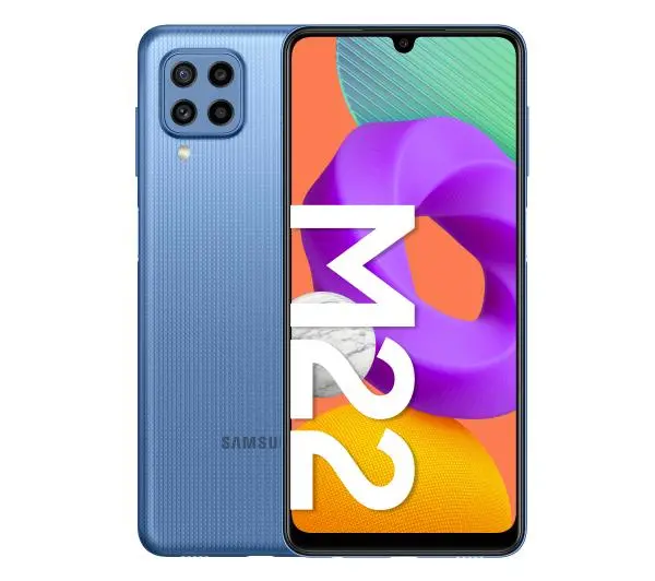<h2>Samsung Galaxy M22 (niebieski)</h2><p>Smartfon Samsung Galaxy M22 oferuje dynamiczny, 90-hercowy ekran Super AMOLED z nasyconymi kolorami. Dzięki przedniemu aparatowi 13 Mpix z efektem bokeh zrobisz jeszcze piękniejsze selfie.</p><h2>Poznaj Samsunga Galaxy M22</h2><a></a><h3>SPEKTAKULARNY OBRAZ</h3><p>Wyświetlacz Infinity-U posiada ekran z 90-hercową dokładnością. Pozwala cieszyć się rewelacyjną ostrością HD+ w każdej sekundzie zabawy oraz niezwykle realistycznymi kolorami Super AMOLED.</p><a></a><h3>POTĘGA 8 RDZENI</h3><p>Samsunga Galaxy M22 to smartfon stworzony do wielozadaniowej obsługi kilku aplikacji jednocześnie. Napędza go wydajny procesor MediaTek Helio G80, który umożliwia bardziej efektywną pracę z dala od przestojów, zacięć i opóźnień.</p><a></a><h3>EFEKTOWNE UJĘCIA</h3><p>Wspaniałe momenty z życia utrwalisz na wiele różnych sposobów, ponieważ w tym modelu zainstalowano potrójny aparat 64 Mpix z optyką portretową, sensorem makro oraz szerokokątnym obiektywem do zdjęć grupowych.</p><a></a><h3>PIĘKNO TWARZY</h3><p>Złap Samsunga Galaxy M22, aktywuj przedni moduł 13 Mpix i jednym ruchem dłoni zapisz oszałamiające selfie. Inteligentne rozmycie bokeh jest dostępne w trybie autoportretowym, aby drobiazgowe szczegóły oczu czy ust znalazły się w centrum uwagi.</p><a></a><h3>CAŁODOBOWA ROZRYWKA</h3><p>Spędzaj więcej czasu z ulubioną muzyką bądź grami bez obaw o przedwczesne rozładowanie baterii. Smartfon jest zasilany przez akumulator o pojemności 5000 mAh, oferujący energię na wiele godzin. W nagłej potrzebie doładujesz go błyskawicznie, korzystając z mocy 15 W.</p><a></a><h3>ROZWIĄZANIA KNOX</h3><p>Nie ważne czy używasz Samsunga Galaxy M22 do celów biznesowych, czy prywatnych. Pliki i poufne informacje będą dostępne wyłącznie dla Ciebie, gdyż urządzenie zabezpieczono na wypadek próby wyłudzenia danych przez złośliwe oprogramowanie.</p><h2>Smartfon Samsung Galaxy M22 z bliska</h2><h3>1 CZYTELNE MENU</h3><p>Samsung Galaxy M22 wykorzystuje udoskonalony interfejs One UI. Zapewnia szybszy, bardziej intuicyjny dostęp do najważniejszych funkcji bądź powiadomień.</p><h3>2 WYGODNE PODŁĄCZENIE</h3><p>Masz monitor z portem USB-C? Połącz go ze smartfonem i w prosty sposób udostępniaj pamiątkowe fotki bądź filmy na przestronnym ekranie.</p><h3>3 PRODUKTYWNA PRACA</h3><p>Szukasz sprzętu dla przedsiębiorczej osoby? Slot Dual SIM w Samsungu Galaxy M22 umożliwi wysyłanie wiadomości lub nawiązywanie połączeń głosowych z 2 numerów telefonu</p><h2>W opakowaniu Samsunga Galaxy M22</h2><h6>1Smartfon</h6><h6>2Kabel USB-C</h6><h6>3Ładowarka sieciowa</h6><h6>4Karta gwarancyjna</h6><h2>Samsung – marka godna zaufania</h2><p>Globalna marka z południowokoreańskimi korzeniami</p><p>Marka obecna na rynku sprzętu elektronicznego od 1969 roku</p><p>Jedna z najbardziej zaufanych i rozpoznawalnych marek na świecie</p>