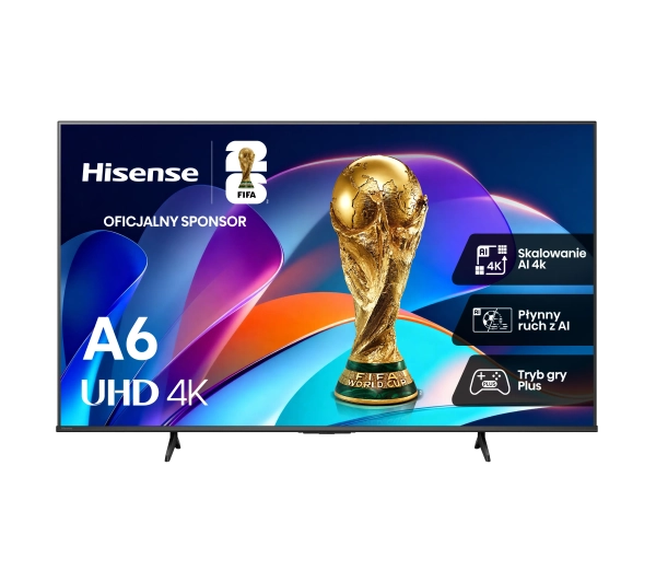 Inteligentna moc 4K (ok. 4 tys. pikseli w poziomie) Kluczowe cechyCiesz się wyraźnym obrazem pełnym detali oraz realistycznym, przestrzennym dźwiękiem, który potęguje wrażenia z oglądania. Płynność ruchu i szybka reakcja sprawiają, że filmy, sport i gry prezentują się naturalnie nawet w najbardziej dynamicznych scenach. Inteligentne funkcje automatycznie optymalizują jakość obrazu, a wygodne sterowanie głosowe ułatwia codzienną obsługę telewizora. Skalowanie AI (Artificial Intelligence) 4KPodnieś jakość obrazu do 4KOglądaj ulubione treści w jakości 4K i odkryj detale na nowo. Zaawansowane algorytmy analizują tekstury oraz krawędzie materiałów o niższej rozdzielczości, poprawiając detale, wyostrzając obraz i redukując szumy. Dzięki temu klasyki i nowe treści zyskują świeży wygląd, a obraz pozostaje wyraźny i pełen intensywnych kolorów. AI Smooth MotionPłynny obraz bez rozmyciaZyskaj płynniejszy obraz dzięki technologii AI Smooth Motion. Inteligentne przewidywanie kolejnych klatek oraz redukcja rozmycia skutecznie eliminują smużenie i drgania. Bez względu na to, czy oglądasz sport, czy grasz, ruch pozostaje wyraźny i naturalny, a każda scena zachowuje dynamikę i szczegółowość. Tryb gry PlusTu zaczyna się płynniejsza graPoczuj większe emocje podczas grania. Funkcje VRR (Variable Refresh Rate) i ALLM (Auto Low Latency Mode) pomagają utrzymać niski input lag, a panel 60 Hz odpowiada za płynne wyświetlanie akcji. Dzięki temu rozgrywka jest bardziej responsywna, naturalna i wciągająca, nawet podczas długich sesji. Dolby VisionWykorzystaj w pełni możliwości rozrywkiPoznaj możliwości technologii Dolby i zanurz się w jeszcze lepszej jakości obrazu oraz dźwięku. Ulubione filmy, seriale, muzyka, sport i gry zyskują nową głębię, a detale, które wcześniej mogły umknąć, stają się wyraźnie widoczne. To doświadczenie, które trudno porównać ze standardowym oglądaniem. Jakość obrazu DTS (Digital Theater Systems) Virtual:XJakość dźwięku, która dorównuje jakości obrazuDTS® Virtual:X wykorzystuje zaawansowane przetwarzanie cyfrowe, aby stworzyć przestrzenne i realistyczne brzmienie. Technologia odtwarza dźwięk wielokierunkowy, w tym także kanały „tylne” i „górne”, korzystając wyłącznie z wbudowanych głośników telewizora. Dzięki temu filmy, muzyka i gry brzmią bardziej immersyjnie — jakby dźwięk otaczał Cię z każdej strony. Tryb FilmowyOglądaj filmy tak, jak chcieliby tego twórcyOdkryj zamysł twórców dzięki trybowi filmowemu. Zachowuje on oryginalne proporcje obrazu, kolory, płynność ruchu oraz dźwięk – dokładnie tak, jak zostało to zaplanowane. Każdy detal odzyskuje swoje znaczenie, a seans zyskuje autentyczny, kinowy charakter. Czujnik światła AIInteligentna jasność dla komfortu oglądaniaDostosuj jasność obrazu do warunków w pomieszczeniu bez żadnego wysiłku. Czujnik światła AI na bieżąco analizuje otoczenie i automatycznie reguluje podświetlenie ekranu, zapewniając optymalne ustawienia. Dzięki temu obraz pozostaje czytelny w dzień i komfortowy dla oczu po zmroku, bez ręcznej regulacji. Tryb sportowy AIPoczuj emocje jak na stadionieMiłośnicy sportu mogą liczyć na jeszcze lepsze wrażenia z oglądania. Tryb AI Sports automatycznie rozpoznaje transmisje sportowe i na bieżąco optymalizuje parametry obrazu oraz dźwięku. Zwiększa szczegółowość, wygładza ruch i podkreśla dźwięki stadionu, dzięki czemu poczujesz atmosferę meczu bez wychodzenia z domu. Precyzyjny kolorCzysta ekspresja barwStojąc przed arcydziełem dostrzegasz, że każdy odcień ma znaczenie i buduje opowieść. Technologia Precision Color pozwala zobaczyć znacznie więcej niż sam obraz – wydobywa detale i głębię, które tworzą spójną, emocjonalną kompozycję. Funkcje Smart Sterowanie głosoweNaciśnij i mów, by rozpocząć rozrywkęSkorzystaj z pilota głosowego Hisense i przekonaj się, jak wygodne może być sterowanie telewizorem. Jedno naciśnięcie przycisku wystarczy, aby aktywować komendy głosowe. Bez trudu wyszukasz programy, zmienisz poziom głośności lub skorzystasz z pomocy wirtualnych asystentów.*Obraz symulowany w celach ilustracyjnych. Wygląd interfejsu, obsługiwani asystenci głosowi oraz aplikacje mogą się różnić w zależności od modelu.Tryb ochrony oczuOglądaj wygodnieOglądaj dłużej bez męczenia oczu. Tryb Eye Care redukuje emisję niebieskiego światła oraz delikatnie ociepla temperaturę barw, tworząc przyjemniejszy i bardziej relaksujący obraz. Jednocześnie kolory pozostają naturalne, dzięki czemu komfort idzie w parze z jakością.System VIDAANajlepsze lokalne i światowe treści na Twoim ekranieDzięki współpracy VIDAA z DeviantArt możesz wprowadzić sztukę do swojego domu. Uzyskaj dostęp do cyfrowych dzieł, ilustracji, fotografii, komiksów i wielu innych materiałów. Zaloguj się na swoje konto DeviantArt, dołącz do globalnej społeczności twórców i otrzymuj codzienne, dopasowane do Ciebie inspiracje. Łączność Udostępnij w TVKliknij, wybierz i oglądajNie ma potrzeby przełączania się między urządzeniami. Funkcja Share to TV pozwala na szybkie przesyłanie ulubionych treści bezpośrednio z Twojego urządzenia na ekran telewizora. Możesz zarówno wyświetlić cały ekran, jak i udostępnić konkretne materiały. *Obraz symulowany wyłącznie w celach ilustracyjnych.*Apple, AirPlay i Apple Home są znakami towarowymi Apple Inc., zarejestrowanymi w USA oraz innych krajach i regionach*Funkcja HDMI obsługuje ALLM i VRR. Zmienna częstotliwość odświeżania działa do 60Hz w rozdzielczości 4K przez HDMI.BluetoothSłuchaj w swoim rytmieWłącz tryb parowania w słuchawkach Bluetooth, aby szybko połączyć je z telewizorem Hisense. Możesz oglądać ulubione filmy i programy na wybranym poziomie głośności, nie zakłócając spokoju pozostałym domownikom. Jakość dźwięku Ez