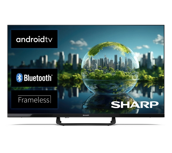 FULL HD SHARP ANDROID TVTM Poznaj intuicyjny i wygodny w obsłudze świat nieograniczonej rozrywki.Smukły, bezramkowy design i ponad 7000 aplikacji.<h3>Nieograniczony świat rozrywki dzięki Android TV</h3><p>System Android TV zapewnia użytkownikom praktycznie nieograniczone możliwości, dzięki dostępowi do ponad 7 000 aplikacji, które można pobrać ze sklepu Google Play. Możesz oglądać cokolwiek zechcesz, wybierając spośród szerokiej oferty serwisów streamingowych (m.in. Disney+, HBO Max, Apple TV, Netflix, Prime Video, Polsat Go czy Player), a dzięki Spotify i Tidal z łatwością odtworzysz ulubioną muzykę. Dodatkowo możliwe jest pobranie na telewizor przeglądarki internetowej, którą można obsługiwać za pomocą myszki lub klawiatury USB.</p><h3>System dźwiękowy Harman/Kardon</h3><p>System dźwiękowy Harman/Kardon został stworzony z myślą o wymagających słuchaczach. Wyposażony jest w specjalne, dwudrożne głośniki o szerokim zakresie reprodukcji dźwięku, które zapewniają jego wysoką precyzję, dynamikę i naturalne brzmienie.</p><h3>Lepsza jakość streamingu dzięki AV1</h3><p>AV1 to najnowszy i najbardziej wydajny kodek wideo stosowany przez dostawców usług strumieniowych, zapewniający najwyższą jakość przy jednoczesnym zmniejszeniu wymagań dotyczących przepustowości łącza. Telewizory SHARP serii FH przetwarzają materiały zakodowane za pomocą tego kodeka w sposób sprzętowy, zapewniając najwyższą wydajność i nieskazitelną jakość oglądanego serialu lub filmu.</p><h3>Smukły i stylowy bezramkowy design</h3><p>Ważne, by telewizor nie tylko zapewniał doskonałą jakość obrazu i dźwięku, ale także odpowiednio wyglądał i komponował się ze stylowo urządzonym wnętrzem. Smukła i cienka bezramkowa konstrukcja sprawi, że Twój telewizor będzie prezentował się nowocześnie w każdym pomieszczeniu.</p><h3>Asystent Google – sterowanie za pomocą głosu</h3><p>System operacyjny Android TV pozwala na korzystanie z Asystenta Google. Dzięki temu obsługa telewizora staje się jeszcze prostsza. Pobierz na telefon aplikację Google TV i skorzystaj z funkcji asystenta głosowego, aby z łatwością sterować telewizorem i korzystać z ulubionych aplikacji za pomocą poleceń głosowych.</p><h3>Rozrywka bez przewodów – wbudowany Chromecast</h3><p>Dzięki funkcji Chromecast nie musisz już przejmować się poplątanymi kablami. Połącz telewizor z Internetem i urządzeniami w sieci domowej, aby zamienić salon w multimedialne centrum rozrywki. Podłączenie do domowej sieci Wi-Fi i skorzystanie z funkcji Chromecast umożliwia bezprzewodowe wyświetlanie treści z komputera* lub smartfona na ekranie telewizora.*Wymagana przeglądarka Chrome</p><h3>Setki programów telewizyjnych z całego świata</h3><p>SHARP Android TV został wyposażony w potrójny tuner pozwalający na odbiór kanałów w standardzie DVB-C (telewizja kablowa), DVB-T/T2 (telewizja naziemna) oraz DVB-S/S2 (telewizja satelitarna), dzięki czemu możliwe jest oglądanie programów z całego świata. Telewizory SHARP Android TV są zgodne z nowymi wymogami dotyczącymi systemu nadawania.</p><h3>HDMI – dostęp do ulubionej rozrywki</h3><p>Przekształć swój salon w prawdziwe centrum multimedialne. Dzięki wejściom HDMI możesz podłączyć do telewizora kilka urządzeń jednocześnie, takich jak odtwarzacz Blu-ray, konsola do gier czy dekoder satelitarny. Telewizor SHARP Android TV zapewnia dostęp do ulubionej rozrywki, kiedy tylko chcesz.</p><h3>Wejścia USB – łatwy dostęp do plików i komfort użytkowania</h3><p>Dzięki 2 wejściom USB bez problemu podłączysz do telewizora pamięć zewnętrzną i odtworzysz ulubioną muzykę lub wyświetlisz zdjęcia z wakacji na dużym ekranie. Możesz też podłączyć myszkę i klawiaturę, co ułatwi Ci obsługę telewizora i pozwoli na jego nowe zastosowania.</p><h3>Bluetooth – bezprzewodowe połączenie z innymi urządzeniami</h3><p>Bluetooth umożliwia bezprzewodowe połączenie telewizora z zewnętrznymi urządzeniami i akcesoriami. Możesz na przykład sparować z telewizorem słuchawki i oglądać ulubione filmy i seriale, nie przeszkadzając przy tym pozostałym domownikom.</p>