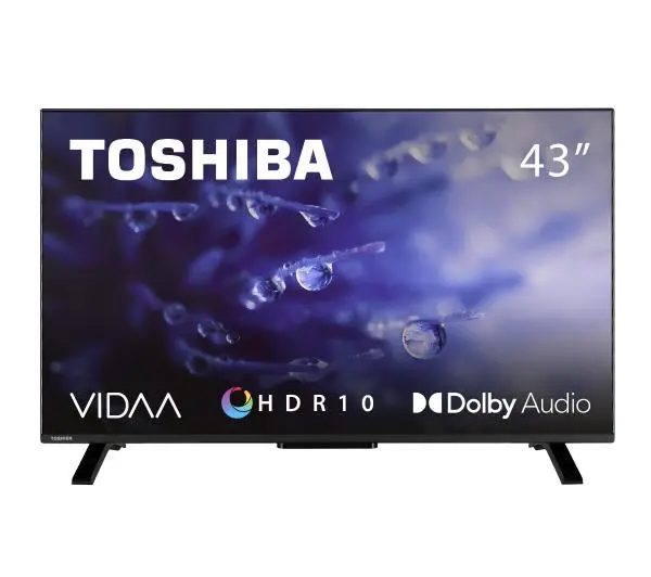 43” FULL HDSMART TVTOSHIBA 43LV2E63DG Wyśmienita jakość obrazu i doskonały kontrastRozdzielczość Full HD w połączeniu z ekranem wielkości 43 cali pozwalają wyświetlić ogromną ilość detali. To doskonała wiadomość dla wszystkich, którzy chcą oglądać programy i seriale w możliwie jak najlepszej jakości. Obsługa standardu HDR10 sprawia, że wyświetlane na ekranie kolory są niezwykle realistyczne i żywe. To możliwe między innymi dlatego, że rozwiązanie to korzysta z zapisanych metadanych na temat właściwych barw, kontrastu i poziomu jasności obrazu dla poszczególnych multimediów. Znakomita optymalizacja wyświetlanego obrazuTelewizor wyposażono w innowacyjne technologie TRU Resolution i TRU Micro Dimming optymalizujące wyświetlany na ekranie obraz. TRU Resolution dokonuje skalowania multimediów słabszej jakości, zwiększając ich rozdzielczość do możliwie najwyższego standardu. Co istotne, odbywa się to automatycznie i w czasie rzeczywistym. TRU Micro Dimming to funkcja, która pozwala zwiększyć kontrast obrazu. Ciemne i jasne obszary zostają zoptymalizowane, żeby zapewnić odbiorcy maksymalny poziom realizmu.Bogata oferta rozrywkowa dzięki VIDAA Smart TVObecność systemu VIDAA pozwala w pełni wykorzystać bogatą ofertę rozrywkową, którą powinien gwarantować każdy nowoczesny telewizor. Oprogramowanie pracuje bardzo szybko, a sam interfejs jest przejrzysty i łatwy w obsłudze. Zapewnia dostęp do ponad 200 aplikacji, takich jak Netflix, YouTube, Disney+, Amazon Prime czy Apple TV. Wszystko to w zasięgu pilota i telewizora podłączonego do Internetu. Dziel się obrazem ze swojego smartfona na ekranie telewizoraMożesz w łatwy sposób połączyć się ze swoim telefonem lub tabletem, aby wyświetlić na ekranie telewizora wybrane treści lub cały ekran. Pozwala na to funkcjonalność smart TV.Dobrej jakości dźwiękDzięki Dolby Audio odtwarzany przez telewizor dźwięk jest bardzo dobrej jakości. Co więcej, głośniki o łącznej mocy 16 watów sprawiają, że jest on donośny i wyraźny. Dźwięk przestrzenny niczym na sali kinowejObecność systemów DTS Virtual:X i DTS HD pozwala cieszyć się dźwiękiem w formacie przestrzennym. Pierwsze rozwiązanie cyfrowo generuje wrażenie wielokanałowego audio, dzięki czemu usłyszysz głębszy bas, a dialogi wybrzmią czyściej. Z kolei DTS HD znacznie poprawia jakość dźwięku przestrzennego po podłączeniu zewnętrznych głośników. Sterowanie za pomocą komend głosowychDo sterowania telewizorem możesz używać komend głosowych, co jest bardzo wygodne. Pobierz na swój smartfon aplikację VIDAA Voice, aby telefon mógł pełnić funkcję mikrofonu. Dzięki temu polecenia będą wyraźne i dobrze interpretowane przez urządzenie.Wbudowany potrójny tuner DVB‑T2/C/S2Telewizor wyposażono w potrójny tuner DVB‑T2/C/S2 zgodny z kodekiem HEVC H.265. Gwarantuje to dostęp do telewizji kablowej, satelitarnej i naziemnej bez konieczności instalowania dodatkowych akcesoriów. Wystarczą kanał antenowy i antena. Duża liczba złączy i bezprzewodowa komunikacja z telewizoremTelewizor dysponuje dwoma złączami HDMI i portem USB. Do dyspozycji użytkownika oddano także moduły komunikacji bezprzewodowej: Bluetooth i Wi‑Fi.Nagrywaj ulubione programy, kiedy nie możesz oglądać telewizjiPVR Ready to wygodne rozwiązanie, które pozwala nagrywać programy na pamięć przenośną. Wystarczy podłączyć pendrive do portu USB. Możesz nagrywać co chcesz, aby tylko być na bieżąco z interesującą Cię rozrywką. Bezramkowy i nowoczesny designTelewizor prezentuje się naprawdę znakomicie. Czarny kolor obudowy i bezramkowy design z pewnością mogą się podobać. Telewizor będzie pasował do każdego rodzaju wnętrza.