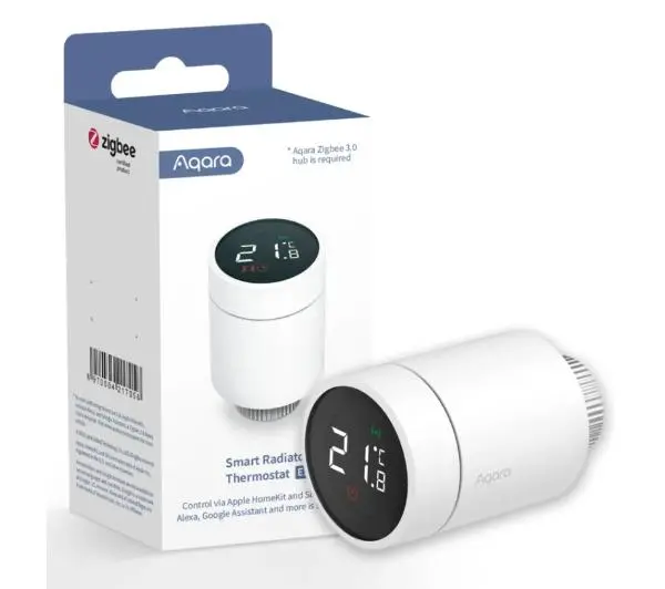 <h2>Nadzorowanie temperatury w domu łatwiejsze niż kiedykolwiek</h2><p>Termostat grzejnikowy Aqara E1 oferuje funkcjonalność, którą może wykorzystać większość grzejników wodnych, włącznie z grzejnikami, podgrzewaczami do ręczników lub ogrzewaniem podłogowym. Aqara E1 korzysta z sygnałów wysyłanych przez czujniki zewnętrzne Aqara i uzgadnia z nimi moc grzewczą.</p><h2>Wykorzystanie protokołu Zigbee 3.0 oraz Matter</h2><p>Korzystaj z zalet technologii inteligentnego domu, która jest najszybsza, najstabilniejsza i najbardziej energooszczędna dzięki protokołowi Zigbee 3.0. W niedalekiej przyszłości termostat Aqara będzie miał wsparcie dla protokołu Matter po jego oficjalnej premierze.</p><h2>Odczyt temperatury z czujnika zewnętrznego (również w systemie HomeKit)</h2><p>Zarządzaj temperaturą w każdym pomieszczeniu, a nie tylko w pobliżu grzejnika. Termostat grzejnikowy Aqara pozwala na bezpośrednie odczytanie temperatury z podłączonego czujnika temperatury i wilgotności Aqara, co jest możliwe nawet w systemie HomeKit, jako alternatywa dla innych termostatów.</p><h2>Wsparcie dla wielu ekosystemów</h2><p>Termostat Aqara E1 łatwo współpracuje z wieloma różnymi ekosystemami i obsługuje sterowanie głosem. Możesz korzystać z niego z aplikacją Apple HomeKit, Alexa, Google, IFTTT.</p><h2>Detekcja otwartych okien i drzwi</h2><p>Aby uniknąć marnowania energii, system zabezpieczeń awaryjnych wyłączy ogrzewanie, gdy wykryje otwarte drzwi lub okna. Można to zrobić na dwa sposoby - używając czujnika temperatury wewnętrznej, który wykryje nagły spadek temperatury, lub podłączając system do sensora drzwi i okien Aqara za pomocą automatyki, co zapewni większą niezawodność systemu.</p><h2>Śledzenie pogody i ochrona przed zamarznięciem</h2><p>Jeśli rury są narażone na zamarzanie, system automatycznie włączy grzejniki. Co więcej, inteligentna automatyka Aqara Home pozwoli na wstępne podgrzanie pomieszczenia w przypadku nagłego spadku temperatury na zewnątrz, aby zapewnić stałe warunki cieplne wewnątrz.</p><h2>Konfigurowalne inteligentne harmonogramy i grupowanie urządzeń</h2><p>Możesz ustawić harmonogramy na wybrane pory czy okresy czasu np. noc, a przechodzenie między nimi będzie w pełni zautomatyzowane. W przypadku posiadania wielu grzejników w jednym pomieszczeniu, wszystkie będą działać współpracując ze sobą w najbardziej wydajny sposób, na podstawie faktycznej temperatury w pomieszczeniu.</p><h2>Kolorowy ekran z podświetleniem</h2><p>Termostat Aqara ma ekran LCD wyposażony w podświetlenie, które zapewnia wyjątkowo dobrą widoczność pod różnymi kątami widzenia. W porównaniu z innymi produktami oferuje on także wysoki kontrast i kolorowe ikony, co ułatwia odczytanie wyświetlanych informacji.</p><h2>Trwałość baterii przez rok</h2><p>Nie trzeba już wymieniać baterii co kilka tygodni użytkowania. Dzięki użyciu protokołu Zigbee i energooszczędnych komponentów, bateria termostatu grzejnikowego Aqara wystarczy nawet na pełny rok bez wymiany.</p><h2>Geofencing oraz wsparcie dla wielu domów</h2><p>W przypadku posiadania kilku domów, będzie możliwe ustawienie niezależnych systemów automatyzacji dla każdego z nich. Dzięki temu będzie można rozpocząć proces ogrzewania domu przed przyjazdem, tak by już w momencie wejścia do domu było miło i ciepło.</p><h2>Prostota instalacji i wysoka kompatybilność</h2><p>Termostat grzejnikowy Aqara ma adaptery, które umożliwiają jego dopasowanie do większości typów zaworów grzejnikowych. Montaż trwa tylko kilka minut i nie wymaga dodatkowych narzędzi.</p><h2>Specyfikacja</h2><ul> <li> Model: SRTS-A01 </li> <li> Bateria: 3 V (2 x 1,5 V AA) </li> <li> Protokoły bezprzewodowe: Zigbee 3.0 </li> <li> Wymiary: Ø 57 x 89 mm (Ø 2,24 x 3,5 cala) </li> <li> Temperatura pracy: 0°C ~ 40°C (32°F ~ 104°F) </li> <li> Wilgotność pracy: 0 ~ 95% RH, bez kondensacji </li> <li> Połączenie gwintowane: M30 x 1,5 mm </li> <li> Maksymalna moc wyjściowa Zigbee: <10 dBm </li> <li> Częstotliwość pracy Zigbee: 2405-2480 MHz </li></ul>