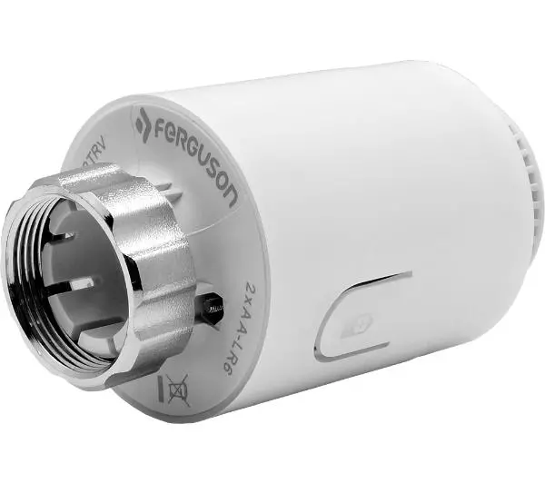 Głowica termostatyczna to niezbędne wyposażenie każdego Domu Inteligentnego, dzięki któremu można w łatwy i przyjazny sposób zarządzać ciepłem w swoim domu, w pracy i w innego rodzaju wnętrzach wymagających ogrzewania.<ul> <li>Stanowi element systemu Ferguson SmartHome 2.0, działa autonomicznie, niektóre funkcje wymagają bramki FS2SH</li> <li>Kompatybilna z systemami: Danfoss, Caleffi, Giacomini</li> <li>Umożliwia automatyczne i zdalne sterowanie grzejnikiem za pomocą aplikacji dla Android i iOS</li> <li>Komunikacja za pomocą protokołu Bluetooth</li> <li>Wbudowane funkcje zabezpieczające (zamarznięcie, dzieci, otwarte okno, itd.) </li></ul>Do sterowania i monitorowania za pomocą telefonu wymaga centrali Ferguson Smart Hub 2.0 FS2SH