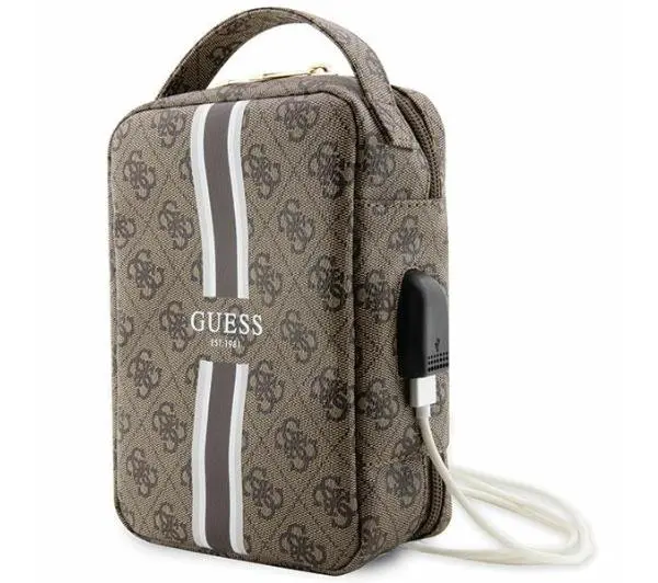 <h3>Guess 4G Printed Stripes Torba - organizer</h3><p>Ekskluzywna i niezwykle elegancka torba typu organizer z kolekcji 4G Stripes to najnowsza propozycja akcesoriów sygnowana przez znany dom mody Guess. Kolekcja 4G Printed Stripe wyznacza nowe standardy unikalnego stylu i oferuje efektowny design, przy jednoczesnym zapewnieniu najwyższego poziomu ochrony Twoim urządzeniom.</p><p>Doskonałą jakość produktów z kolekcji 4G Printed Stripes potwierdzają charakterystyczne logo 4G umieszczone na skórze ekologicznej Saffiano- jest ona niezwykle wytrzymała, odporna na uszkodzenia i zniekształcenia. Nadrukowane logo Guess umieszczono na wyróżniającym się pasku, którego kolorystyka doskonale współgra z stylistyką torby. Elementy 4G to nieodłączny motyw obecny na wiele sposobów w różnych kolekcjach cenionej marki. Jest to znakomita propozycja dla osób, które szukają funkcjonalnych dodatków które jednocześnie są modnym dodatkiem do codziennych stylizacji.</p><p>Wnętrze torby jest niezwykle funkcjonalne - liczne przegródki pozwalają na komfortowe przechowywanie niezbędnych drobnych akcesoriów. Torebka posiada zewnętrzny port zakończony złączem USB, zaś wnętrze torby skrywa kabel zakończony złączem USB. Torba została wyposażona w bardzo wygodny, poręczny uchwyt który pozwoli na zawieszenie jej wokół nadgarstka lub trzymanie w dłoni.</p><table> <tbody> <tr> <td colspan="2"> <h3>Dane Techniczne</h3> </td> </tr> <tr> <td>Kolekcja</td> <td>4G Printed Stripes</td> </tr> <tr> <td>Typ produktu</td> <td>Torba-Organizer</td> </tr> <tr> <td>Materiał zewnętrzny</td> <td>Wysokiej jakości skóra syntetyczna</td> </tr> <tr> <td>Materiał wewnętrzny</td> <td>Polyester / Nylon</td> </tr> <tr> <td>Wymiary</td> <td>23.5 x 15,5 x 6,5 cm</td> </tr> <tr> <td>Kolor</td> <td>Brązowy</td> </tr> </tbody></table>