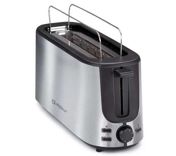 <h3>Efektywność 1000 W – szybkie przygotowanie tostów</h3><p>Toster Alpina o mocy 1000 W umożliwia szybkie i równomierne opiekanie pieczywa, nawet dłuższych kromek. Dzięki dużej mocy urządzenia śniadanie czy przekąska jest gotowa w kilka minut, co pozwala zaoszczędzić czas w porannym pośpiechu. To rozwiązanie idealne dla osób, które cenią szybkie i wygodne przygotowanie posiłków.</p><h3>Przeznaczony do długiego pieczywa – więcej komfortu i wygody</h3><p>Toster został zaprojektowany z myślą o opiekaniu dłuższych kromek chleba, dzięki czemu możesz przygotować pełnowymiarowe tosty bez konieczności przycinania pieczywa. To idealne rozwiązanie dla miłośników świeżego, chrupiącego chleba, bułek czy bagietek. Komfort użytkowania sprawia, że codzienne śniadania stają się prostsze i przyjemniejsze.</p><h3>Nowoczesny design – elegancja w każdej kuchni</h3><p>Toster Alpina łączy funkcjonalność z nowoczesnym wyglądem, dzięki czemu doskonale komponuje się w każdej kuchni. Stylowy design sprawia, że urządzenie nie tylko ułatwia codzienne przygotowanie posiłków, ale także stanowi estetyczny element wyposażenia kuchni, podkreślając jej nowoczesny charakter.</p><h3>Kompaktowe wymiary – praktyczny i wygodny w użytkowaniu</h3><p>Urządzenie o wymiarach 407 × 134 × 180 mm zajmuje niewiele miejsca na blacie, dzięki czemu zmieści się w każdej kuchni, nawet tej o ograniczonej przestrzeni. Kompaktowa konstrukcja pozwala łatwo przechowywać toster, gdy nie jest używany, bez zajmowania zbędnego miejsca, co zwiększa wygodę użytkowania.</p><h3>Idealny na śniadanie – wygoda w codziennej rutynie</h3><p>Toster Alpina to doskonałe rozwiązanie dla osób, które chcą szybko przygotować smaczne śniadanie. Chrupiace tosty z ulubionymi dodatkami, takimi jak ser, szynka czy dżem, stają się proste do przyrządzenia. Dzięki temu codzienne śniadania są smaczne, szybkie i wygodne, co ułatwia rozpoczęcie dnia w przyjemny sposób.</p><p>Toster Alpina jest łatwy w obsłudze i zapewnia pełną wygodę podczas codziennego użytkowania. Intuicyjna konstrukcja pozwala szybko włożyć pieczywo i uruchomić urządzenie, bez konieczności dodatkowych ustawień. To praktyczne rozwiązanie, które łączy efektywność, komfort i estetykę, sprawiając, że przygotowanie tostów staje się przyjemnością. Toster Alpina łączy szybkość, wygodę i nowoczesny design, dzięki czemu codzienne przygotowywanie śniadań staje się prostsze, przyjemniejsze i smaczniejsze.</p>