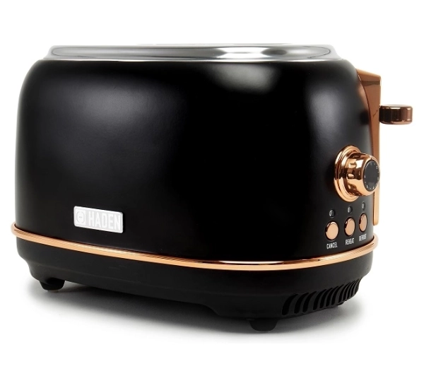 Zacznij dzień dobrze<p>Z tosterem z linii Heritage w swojej kuchni! Wiemy, że poranki potrafią być intensywne – dlatego proponujemy sprawdzone rozwiązania i szybką, intuicyjną obsługę. Ciepły i pachnący tost przygotowany na śniadanie nastraja dobrze na cały dzień – a my dbamy o to, żeby nasze urządzenia w tym pomagały.</p>Toster Haden z linii Heritage to dobry wybór na dzień dobry!1.<p>Wydajność: toster posiada dwie szerokie szczeliny, w których zmieszczą się nawet grube kromki chleba</p>2.<p>Komfort: sześciostopniowa kontrola opiekania i funkcja centrowania, dzięki której tosty są zawsze równomiernie zrumienione</p>3.<p>Bezpieczeństwo: automatyczny wyłącznik i antypoślizgowe gumowe nóżki zapewniające stabilność</p> 4.<p>Praktyczność: toster posiada funkcje rozmrażania, odgrzewania i opiekania oraz przycisk anulowania pracy w dowolnym momencie</p>5.<p>Jakość: zwijany kabel oszczędza miejsce na blacie i pozwala ustawić urządzenie zawsze pod ręką, tacka na okruchy ułatwia zachowanie czystości</p> Zacznij dzień dobrze… w stylowej kuchni.<p>Czarny toster Haden z linii Heritage doskonale odnajdzie się w Twoim wnętrzu. Nowoczesna odsłona klasyki w mocnym kolorze dopełni ponadczasową elegancję Twojej kuchni zgrywając się z każdym wystrojem. Harmonijny design oraz stylowe i dopracowane detale sprawią, że funkcjonalne urządzenie zmieni się w wyjątkową ozdobę.</p>Zacznij dzień dobrze… przy śniadaniu.<p>Niezawodny toster z linii Heritage powstał, by towarzyszyć Ci w kuchni od samego rana. Gorące tosty będą gotowe raz-dwa, a Ty możesz cieszyć się poranną chwilą przy śniadaniu, z filiżanką ulubionej herbaty. Szukasz innych urządzeń małego AGD do kuchni? Zobacz również czajniki z linii Heritage i stwórz stylowy zestaw.</p>Haden<p>to nowoczesne i funkcjonalne elementy wyposażenia wnętrz, które od rana wspierają Twoją kreatywność w kuchni i inspirują do przygotowywania doskonałych śniadań. Harmonijne połączenie jakości i stylu to nasz znak rozpoznawczy, który współgra z Twoim smakiem.</p>