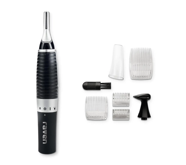Trymer ETN001X✓ Aż 4 nasadki w zestawie – do nosa, brwi, brody i uszu✓ Wodoodporne głowice są łatwe do utrzymania w czystości✓ Podświetlane miejsce golenia dla jeszcze większej precyzji<a>Korzyści dla Ciebie</a><a>Co otrzymujesz</a><a>Warto wiedzieć</a>Korzyści dla Ciebie Wygodnemycie głowic Trymer Raven ETN001X to urządzenie przeznaczone do usuwania zbędnego owłosienia na sucho. Jednak nie oznacza to, że podczas czyszczenia akcesoriów nie możesz używać wody! Głowice dołączone do urządzenia są wodoodporne, a zatem z powodzeniem możesz umieścić je pod bieżącą wodą, by wypłukać z nich wszystkie pozostałości po strzyżeniu. Tym samym jesteś w stanie zachować odpowiednią higienę wszystkich końcówek! Praktycznepodświetlenie Urządzenie Raven ETN001X wyróżnia się ogromną precyzją pracy! Wyposażone w podświetlenie pozwoli Ci dokładnie zajrzeć do nosa czy w inne, trudno dostępne miejsca, by przekonać się, czy wszystkie niechciane włoski zostały już usunięte. Tym samym już zawsze będziesz cieszyć się perfekcyjnym wyglądem, a żaden niesforny włos, który ukrył się podczas zabiegów pielęgnacyjnych, nie zniszczy Twojego dobrego samopoczucia. Ogromnemożliwości Wymienne głowice sprawiają, że Raven ETN001X jest urządzeniem wielofunkcyjnym, pozwalającym na kompleksową pielęgnację twarzy. W opakowaniu znajdziesz końcówkę do nosa, brwi, brody oraz uszu, a zatem przy użyciu trymera jesteś w stanie w wygodny i sprawny sposób pozbyć się niechcianego owłosienia z wybranych fragmentów twarzy. Co najważniejsze – dzięki starannemu wyprofilowaniu każdej z nasadek sprawdza się w trudno dostępnych miejscach! Bateriaw zestawie Zaopatrz się w urządzenie Raven ETN001X i zacznij z niego korzystać od razu po rozpakowaniu trymera! Do jego działania potrzebna jest jedna bateria AAA, która została dołączona do zestawu. Oznacza to, że unikniesz dodatkowych zakupów i nie musisz już odwlekać zabiegów, na które czekałeś. Po prostu chwyć trymer w dłoń i rozpocznij usuwanie irytujących Cię dotąd włosków!Co otrzymujesz W zestawie:✓ Trymer do nosa✓ Bateria AAA, 4 nakładki grzebieniowe: do nosa, brwi, brody i uszu✓ Instrukcja obsługi z kartą gwarancyjnąWarto wiedzieć Jeden trymer wiele możliwości <p>Precyzyjne usunięcie włosów z nosa czy uszu bywa kłopotliwe, bolesne i czasochłonne. Dlatego też wiele osób decyduje się na wizyty u kosmetyczki, która wykona to zadanie o wiele sprawniej. Jednak teraz możesz samodzielnie zająć się niechcianym owłosieniem, uzyskując doskonałe efekty, jeśli tylko sięgniesz po urządzenie Raven ETN001X. Trymer z wymiennymi końcówkami zapewnia kompleksową pielęgnację i to bez konieczności wychodzenia z domu!</p>